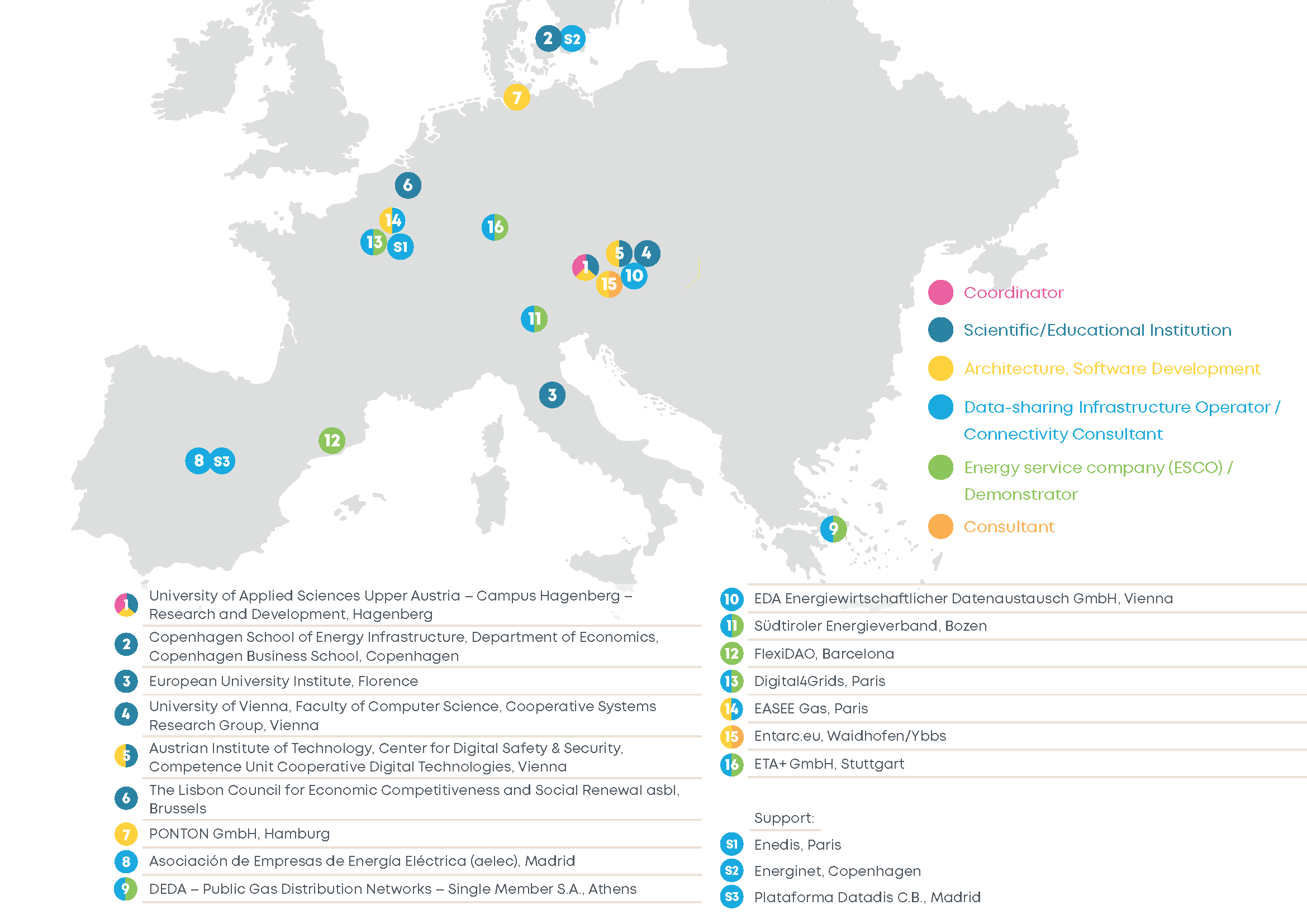 The EDDIE consortium consists of 16 partners from 8 different EU Member States representing scientific and educational institutions, architecture and software development companies, data-sharing infrastructure operators and connectivity consultants as well as energy service companies (ESCOs).