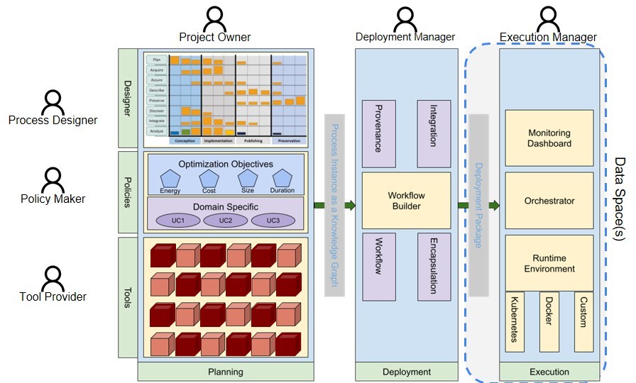 DataBri-X adopted a multifaceted approach to establish its technical underpinnings. A unified architecture was designed to encompass not only the individual tools themselves, but also communication protocols, workflow modelling functionalities, and the governance framework. This overarching design facilitated seamless integration with external data spaces, enabling efficient data exchange and collaboration. Project requirements, extracted from the use cases, guided the development process, ensuring each technical component directly addressed user needs.