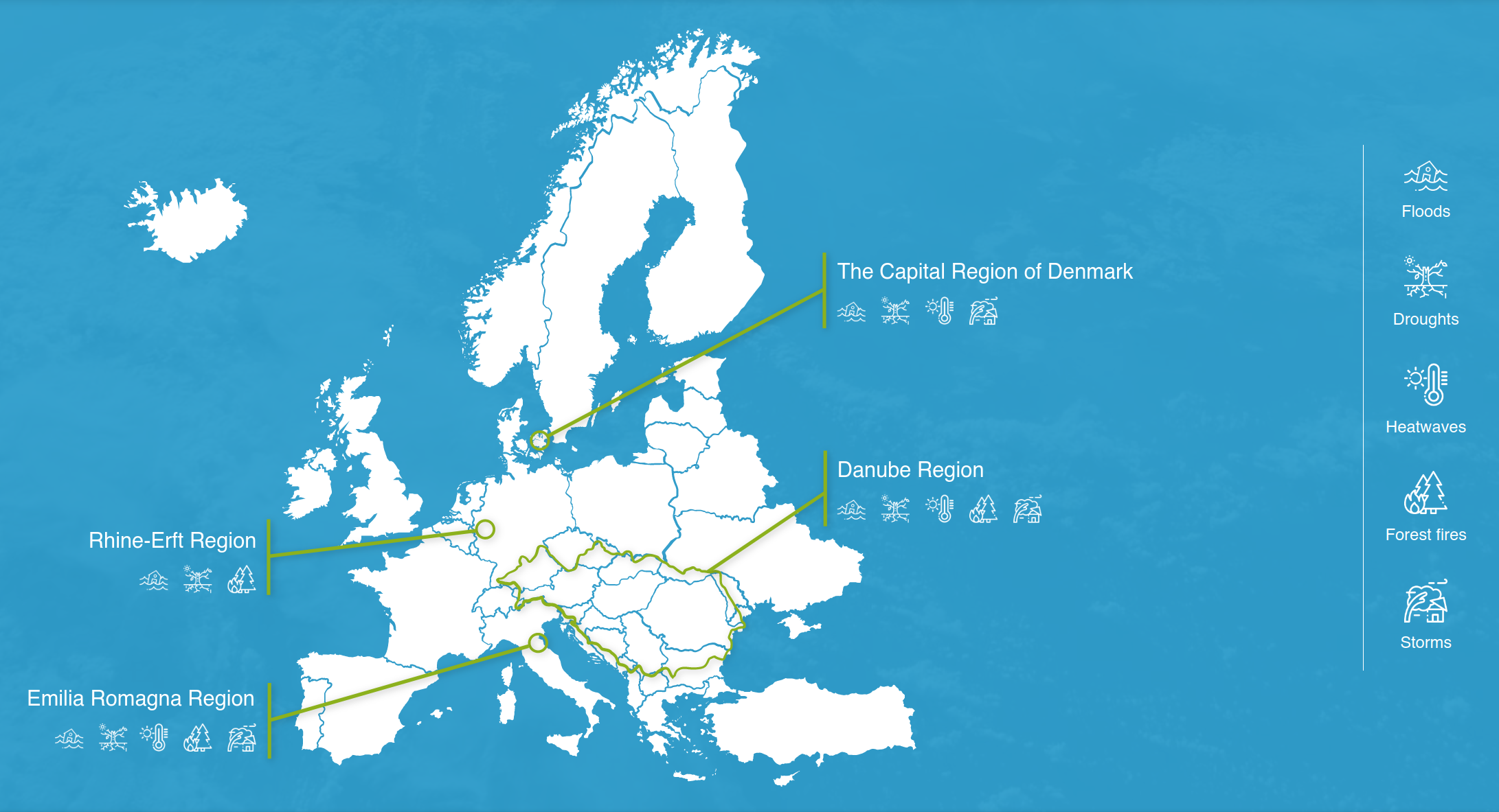 - The set-up and understanding of issues, data and tool availability that is seen at grassroots levels within the four Real World Labs – in The Capital Region of Copenhagen, Emilia Romagna, Rhine Erft and Danube Regions. This has included building stakeholder partnerships at local level.