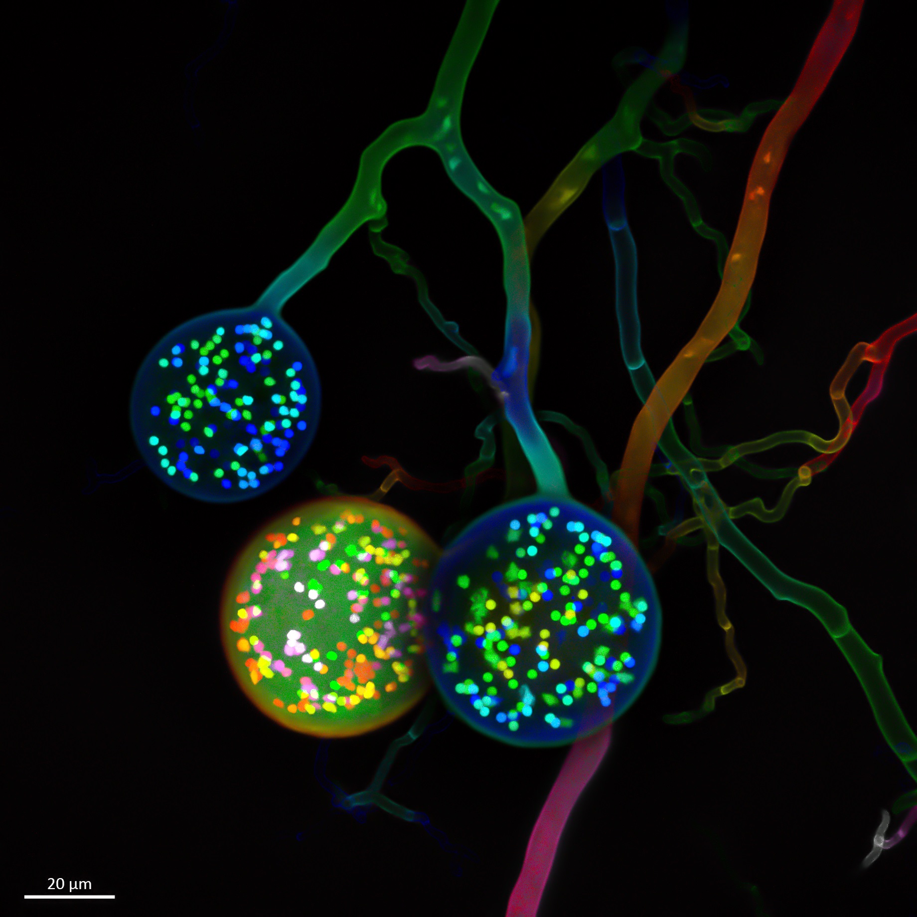Despite their ecological and commercial importance, the genetic mechanisms governing the reproduction of these fungi (believed to be asexual organisms) and the connectivity of their underground networks remain unknown. Their networks facilitate large-scale nutrient transfer, but their efficiency varies depending on genetic makeup and structure, but due to their peculiar cell organization and genetic makeup these processes are not clearly understood. AMF possess multinucleate hyphae, meaning that thousands of nuclei coexist within a single continuous cell. Previously, these nuclei were thought to be genetically diverse, challenging the concept of AMF as true individuals. However, recent findings reveal a strict genetic organization: AMF can contain either genetically identical nuclei, or in some rare occasions they contain two nuclear population of unique genetic makeup (two genomes in a cell).