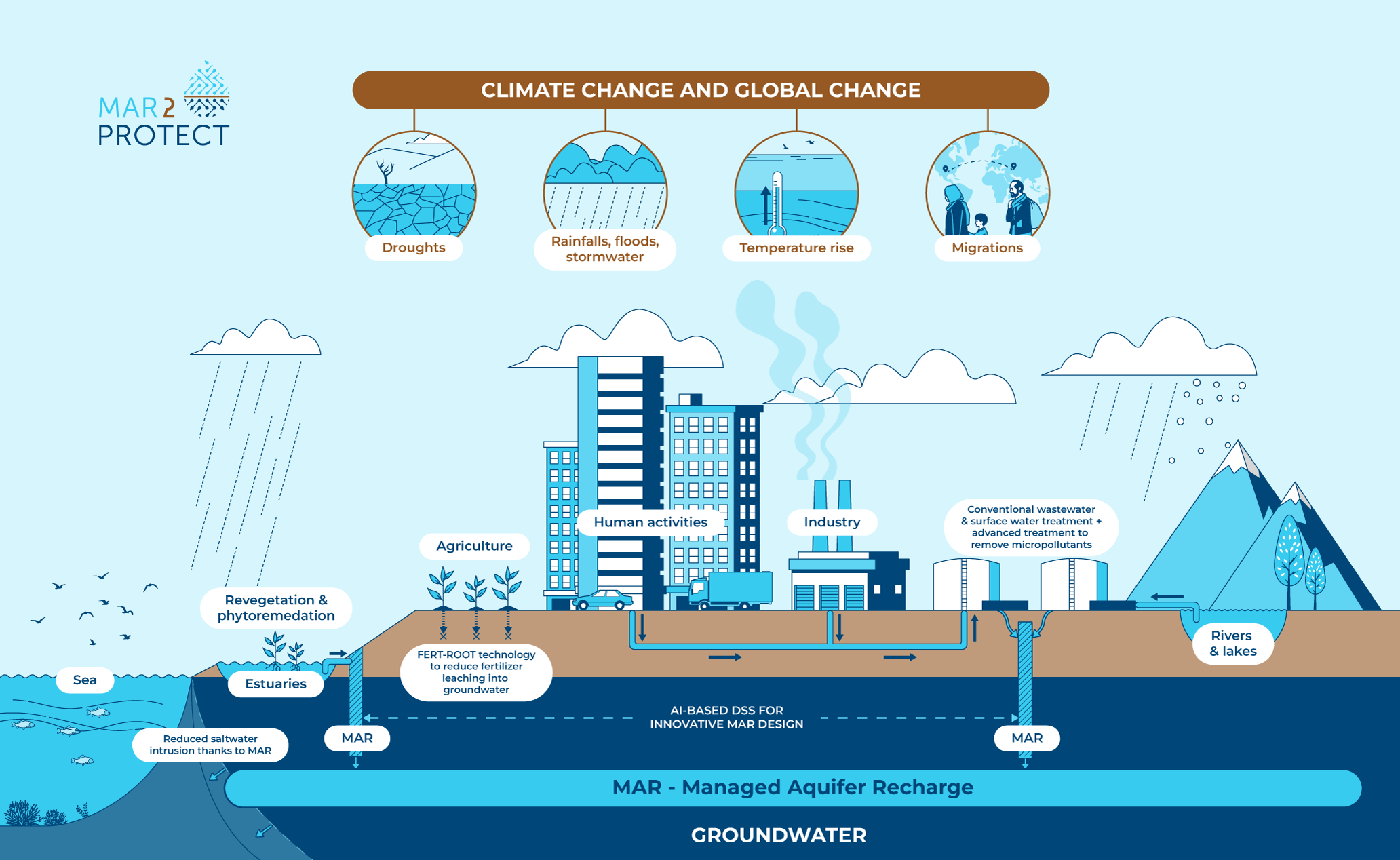 The core of the MAR2PROTECT is this M-AI-R DSS, which combines technological solutions and social input, improving groundwater quality and quantity. To ensure it can be widely applied, the project is collecting data from seven demonstration sites across different climates, water sources, and pollution levels. Using this all-encompassing approach, MAR2PROTECT aims to significantly improve groundwater protection across Europe and beyond.