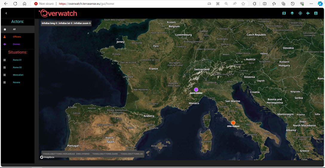 Different data coming from diverse sources, such as operative services (CEMS data) and space assets (EO, SatNav), have been integrated, with the aim to develop a final integrated mapping system. Several AI algorithms for event delineation have been developed and refined for both fires and floods, and different data used to feed the mapping system (satellite data, geotiff, shape files, etc…). In the same way, different digital technologies have been set up (mapping provided by Copernicus EMS, mapping by drones, GNSS, backend of the OVERWATCH platform, the OVERWATCH dashboard, the Big data repository for Geo Data, the Geo-importer able to ingest geospatial data and provide generated maps, the AR 3d holographic map user interface, the Drone-based fallback communications).
