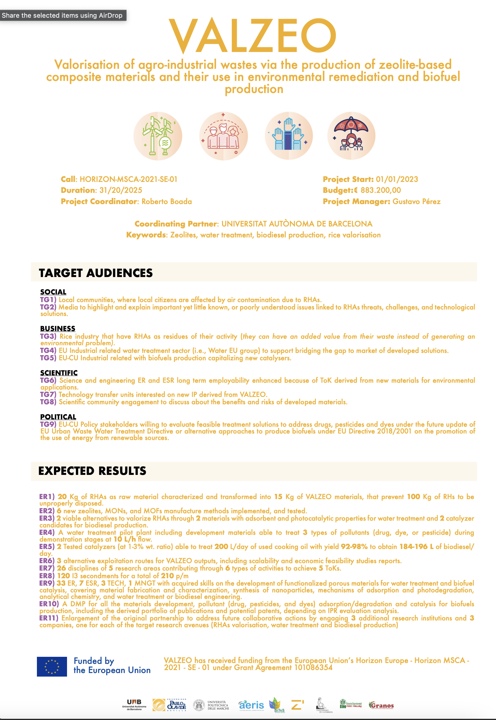 Periodic Reporting for period 1 - VALZEO (Valorisation of agro-industrial waste to obtain zeolite-based composite materials and their use in environmental remediation and biofuel production)