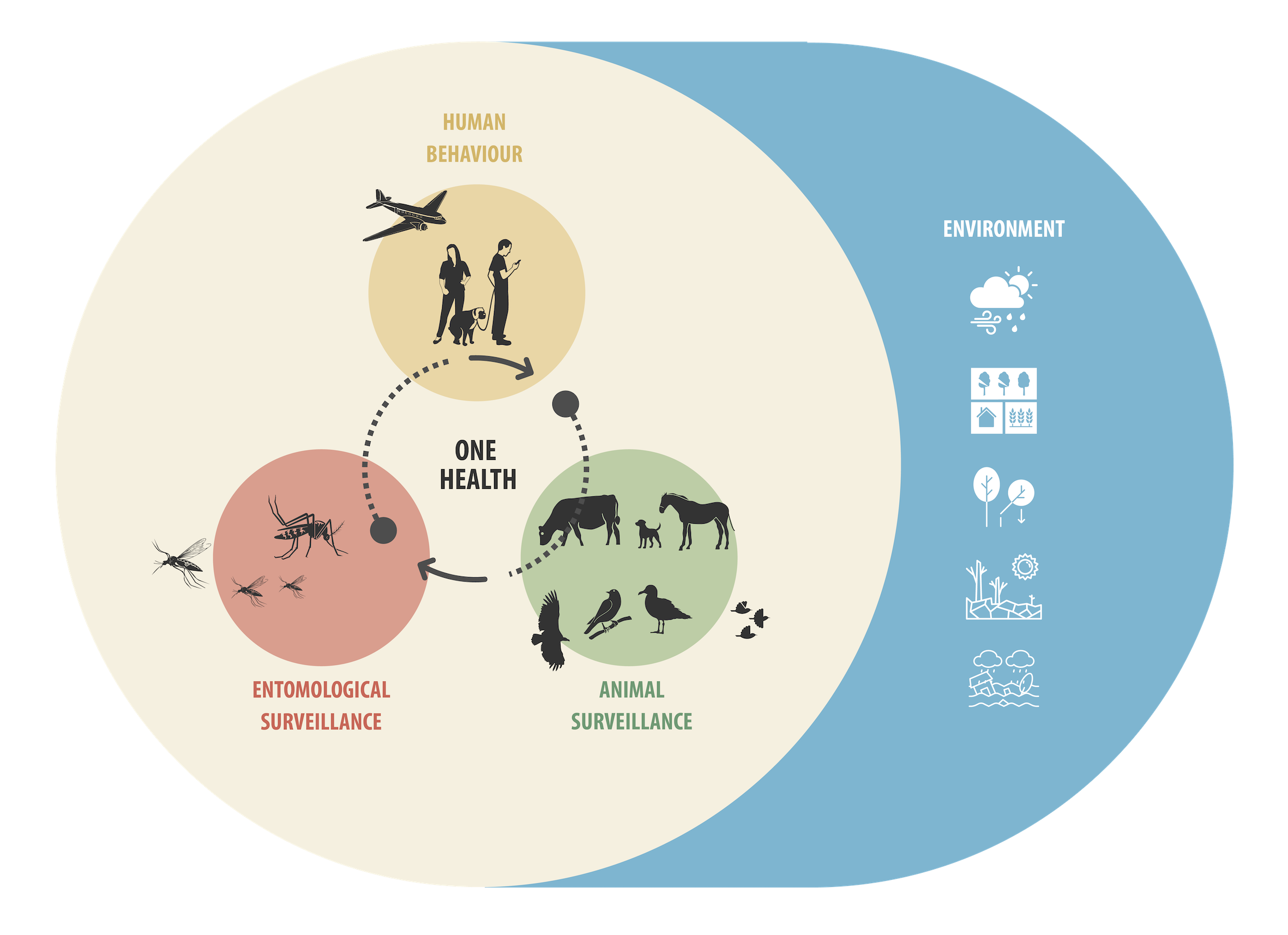 E4Warning is a project designed to understand and predict the spread of these diseases by examining the interactions between humans, mosquitoes, other animals, and the environment. The project focuses on two disease cycles: urban diseases like dengue and Zika, spread by Aedes mosquitoes, and zoonotic diseases like West Nile fever, which primarily circulate among birds and can spill over to humans or horses, transmitted mainly by Culex mosquitoes.