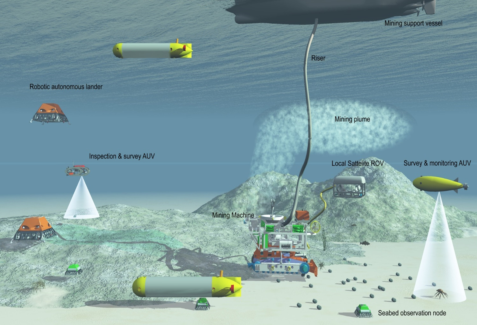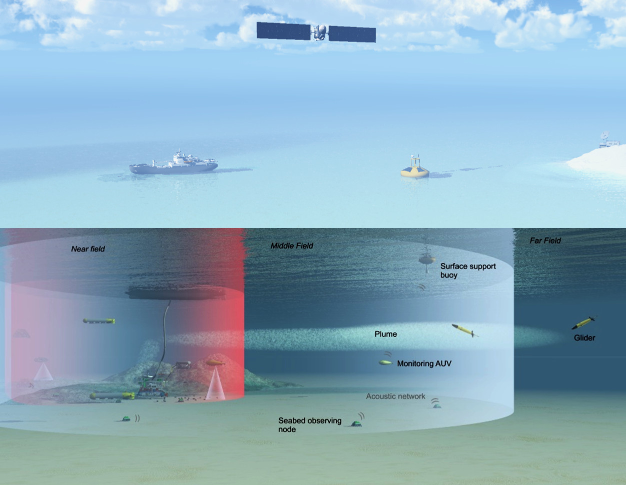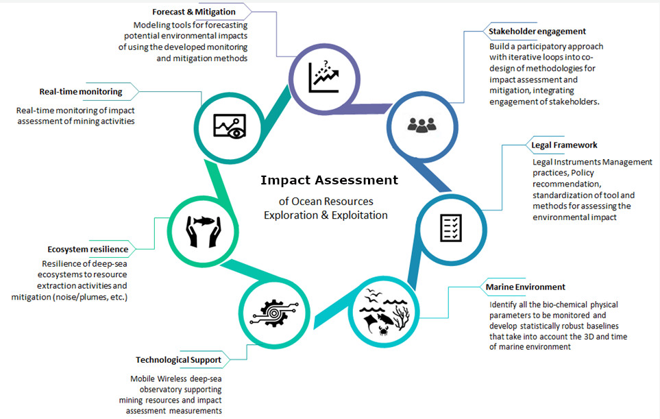 TRIDENT aims to develop a reliable, transparent and cost-effective system for continuous environmental impact assessment and monitoring of exploration and exploitation activities in the deep sea. All potential environmental impacts and mitigation approaches must be fully understood beforehand. The effective monitoring and inspection system to be developed will comply with international and national legal frameworks. TRIDENT will complement all relevant physical, chemical, geological and biological parameters already known to be measured at the sea surface, mid-water and seabed. The project will also identify gaps in methods of real-time data gathering, build data sets, and develop technological solutions to address them. These are essential steps to develop statistically robust environmental baselines, establish reliable indicators of good environmental status and define thresholds for significant impact, enabling the standardisation of tools and methods. The project consortium will subsequently develop and test an integrated system of static/relocatable and mobile observatory platforms equipped with the latest automatic sensors and samplers to measure environmental parameters. This team of relocatable and mobile observatories with autonomous operations, combined with adaptive observation strategies, will be critical for a cost-effective monitoring solution with optimal spatiotemporal coverage of the monitoring areas. To support quick actions for preventing serious harm to the environment, the system will implement high-capacity data handling pipelines able to collect, transmit, process and display monitoring data in near real-time, INSPIRE compliant. and made available through the European Marine Observation and Data Network (EMODnet). Finally, TRIDENT will provide technological and systemic solutions for forecasting potential environmental impacts by using the developed monitoring and mitigation methods.