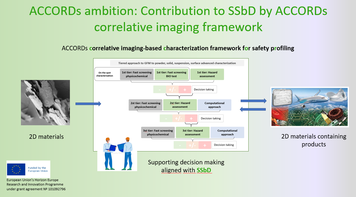 The ACCORDs project will provide user guidance, develop new imaging-based characterization methods, establish reference in vitro tests, create new reference 2D NMs, offer a reporting guideline for FAIR data sharing, and compile an atlas of reference images for GFM safety diagnostics.