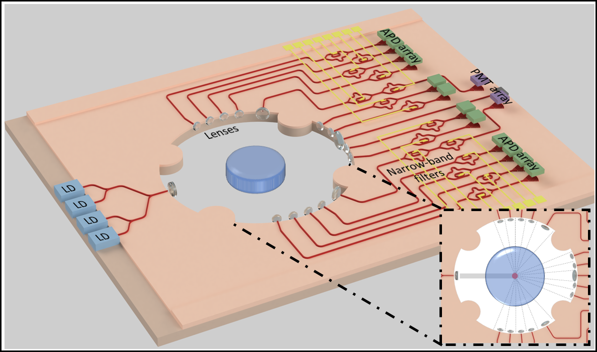 Obj 1: Develop a TriPleX PIC for FCM and fluorescence sensing and use it as a dual sensing tool for detection of EVs in blood samples and detection of biomarkers on the surface of these EVs.
