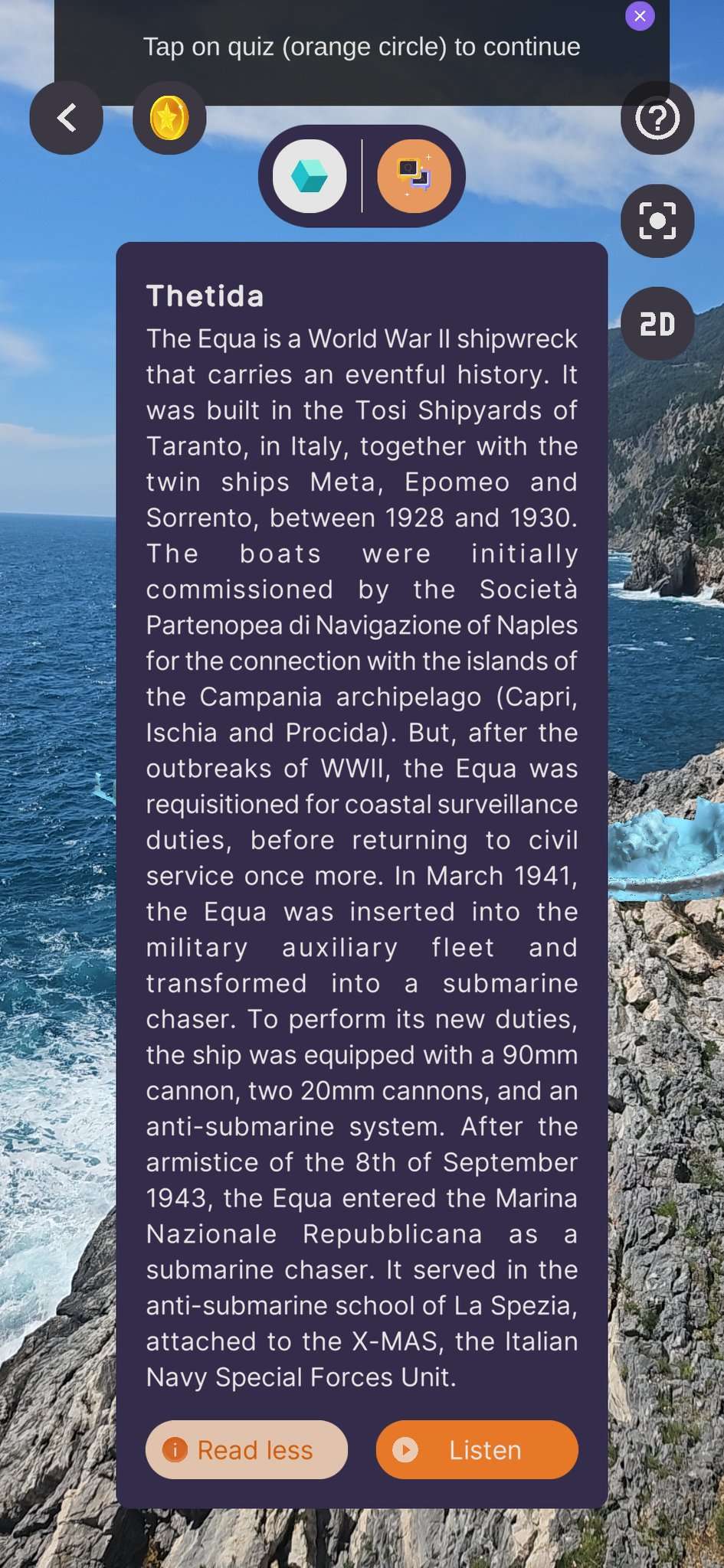 • The participatory Living Lab Dialogues, training workshops and crowdsourcing activities planned and currently being employed, actively engaging multiple stakeholders, end users and community groups into participatory and impact assessment, training and capacity building, and action planning to build a roadmap for the active monitoring, protection and sustainable development of underwater and coastal cultural heritage sites. The completed and ongoing activities contribute to a high societal impact reaching, involving and engaging a wide range of target groups for the active monitoring and protection of the heritage sites; as well as raising awareness, educating and building capacity across multiple sectors and actors.