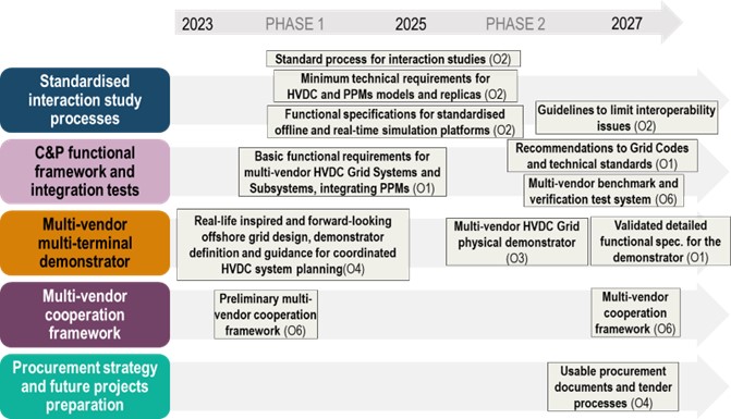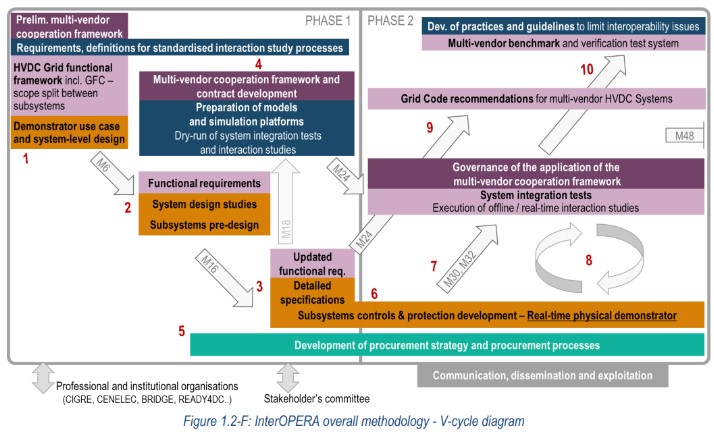 Foreseen real HVDC projects define the demonstrator case study. The system-level design provides guidance to coordinate European grid architecture & topology ensuring seamless system expansion. Interoperability of control and protection systems will be de-risked using a real-time physical demonstrator. Concrete results will be validated through practical testing: detailed functional specifications, standardised models, simulation platforms and interaction study processes, multi-vendor cooperation agreements. Frameworks will be translated into operational and strategic tools available to all European stakeholders to develop multi-terminal HVDC grids that enhances offshore wind integration. External stakeholders and Standards agencies are involved in two-way consultation to maximise uptake of InterOPERA’s key exploitable results.