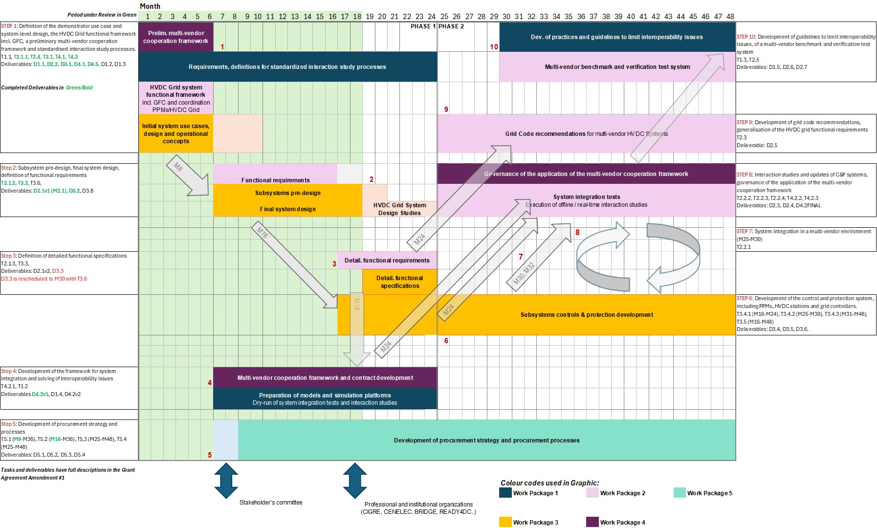Task T3.6 – HVDC Grid System Design Studies is initiated to pick up the study results from T3.1 and perform more detailed investigations. The Output of T3.6 will be a Study Report of the DC Load Flow Studies, DC Quasi Stationary Studies, and DC Transient Studies. This work is ongoing and is anticipated to be completed at M24. This task is closely aligned with T3.3 in which detailed subsystem specifications are finalized.