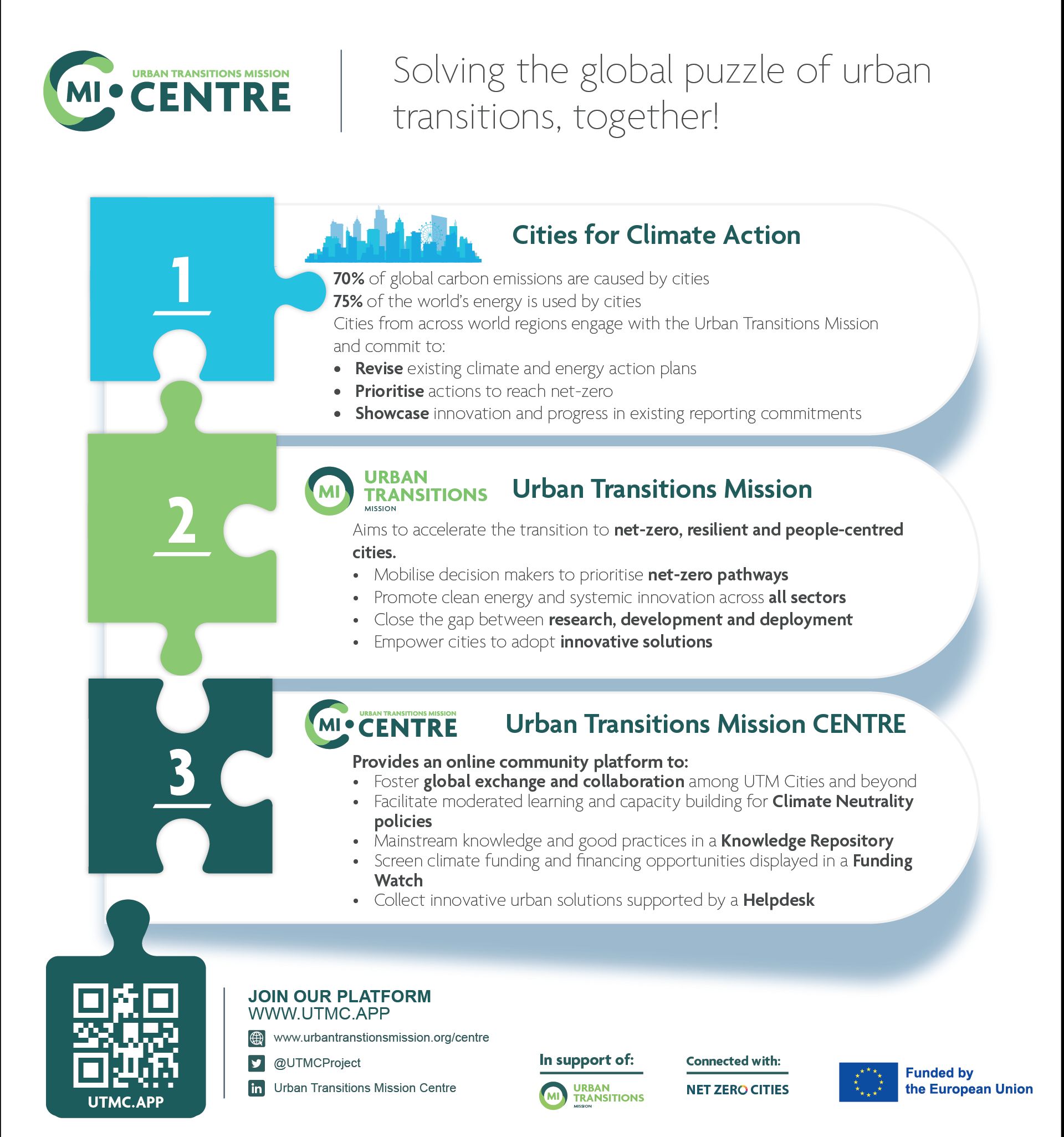 GKEC started its activities as Urban Transitions Mission Centre (UTMC) one year later, in December 2022. Building on the European Mission for Climate-Neutral and Smart Cities, UTMC supports the activities of the Urban Transitions Mission of Mission Innovation, enables a wide international knowledge and practice network of cities and urban stakeholders to accelerate transitions globally. It enables cities to build their capacity in a networking environment with access to knowledge and tools on urban systems integration, technology developments, successful policies, investment and funding opportunities.