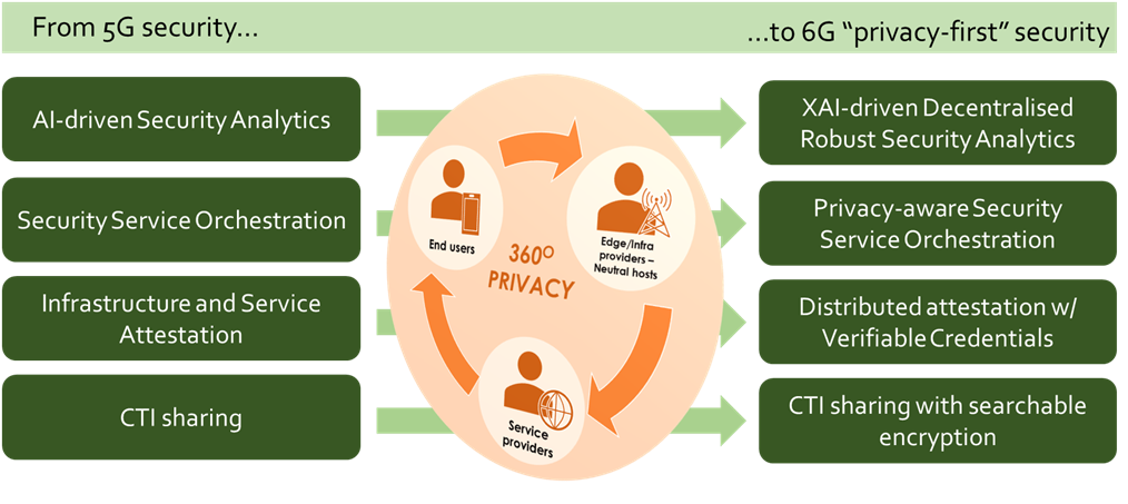 In this context, the mission of PRIVATEER is to pave the way for 6G “privacy-first security” by studying, designing and developing innovative security enablers for 6G networks, following a privacy-by-design approach.