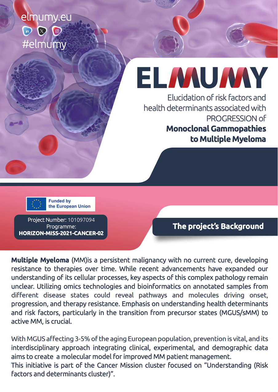 Periodic Reporting for period 1 - ELMUMY (Elucidation of risk factors and health determinants associated with PROGRESSION of Monoclonal Gammopathies to Multiple Myeloma)