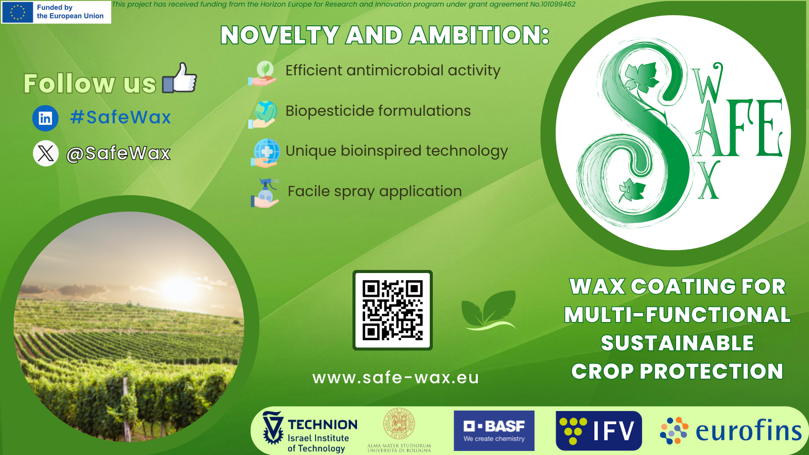 - Sustainability: development of SafeWax aligns with European strategies like the Green Deal, promoting sustainable agriculture.