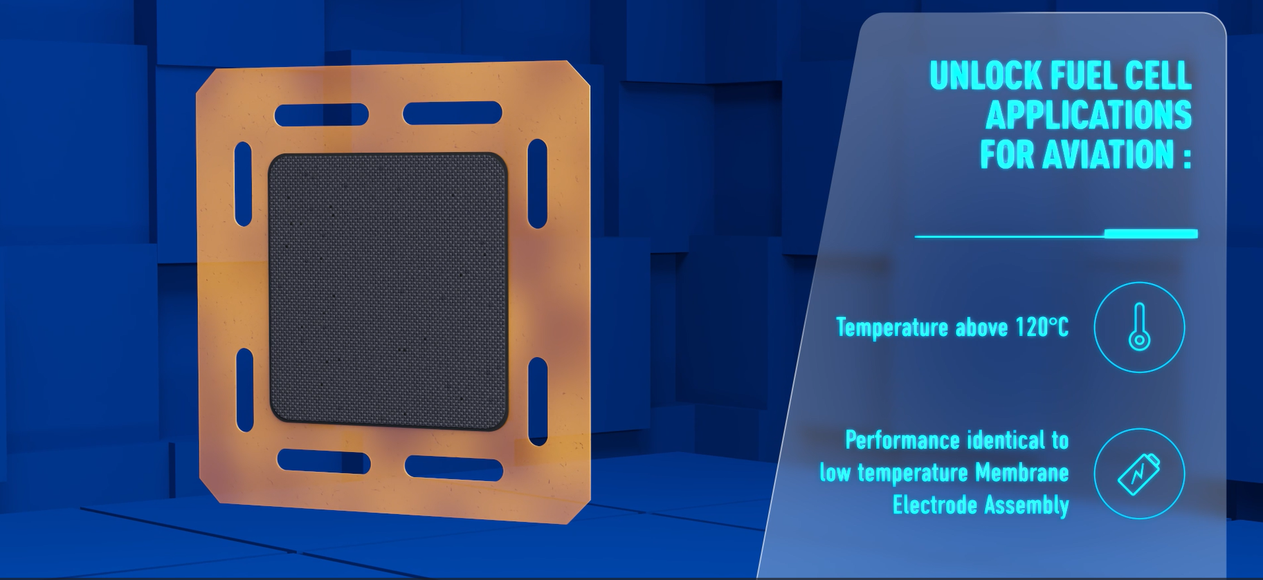 The Low Temperature Proton Exchange Membrane (LT-PEM) technology (incl. Membrane Electrode Assembly - MEA) emerging from the automotive industry is of great interest for aviation, but thermal management issues are still be solved. Operated below 100°C, they exhibit attractive power density but are incompatible with aircraft environment due to poor heat rejection. Also, current High Temperature FCs operated around 160°C are not at the expected level of performance for aviation, despite interesting heat rejection performances. The development of a new-generation MEA, working at temperature above 120°C and with performances equivalent to current LT-PEM MEA is the key to unlock FC applications for aviation.
