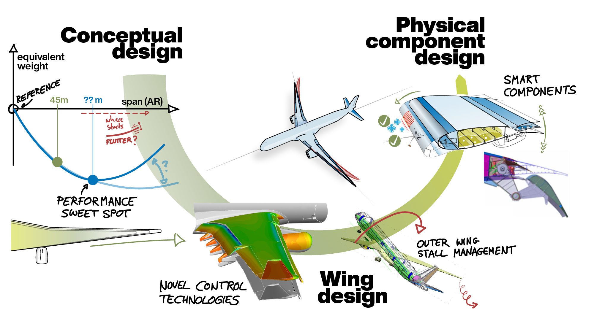 The wing plays the dominating role for a further drastically drag & weight improved aircraft. The more the product concept may change the more the wing design concept has to be adapted.