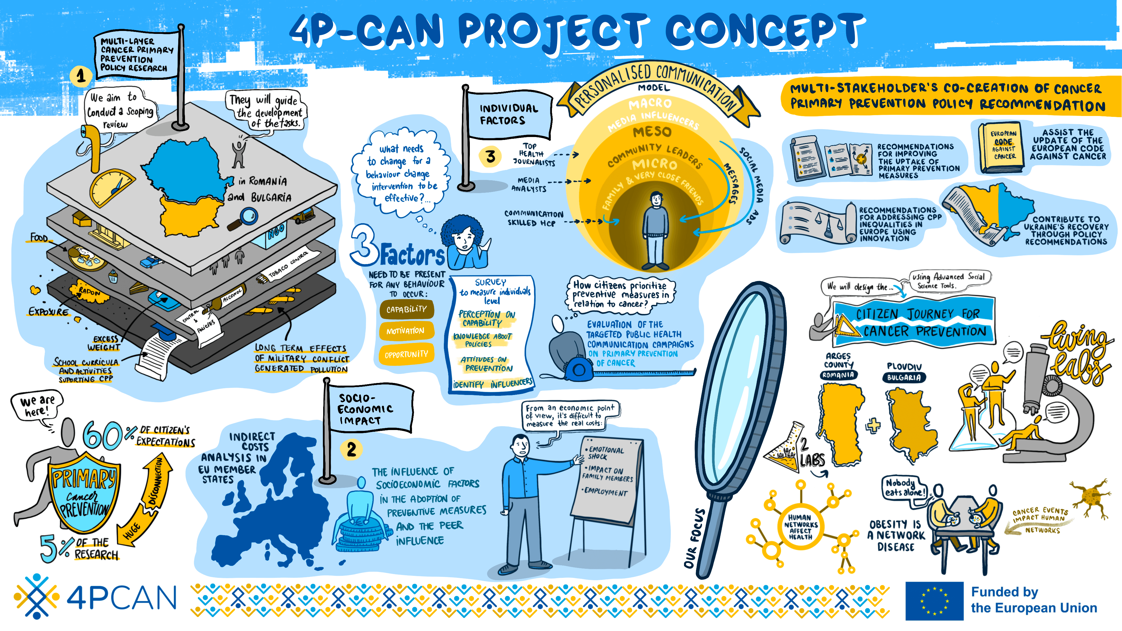 At its core, 4P-CAN is geared towards understanding both macro and micro-level barriers in cancer primary prevention within the CEE Consortium countries. From framing legislation around lifestyle factors to delving into the repercussions of various pollution sources, the project has its lens on comprehensive areas.