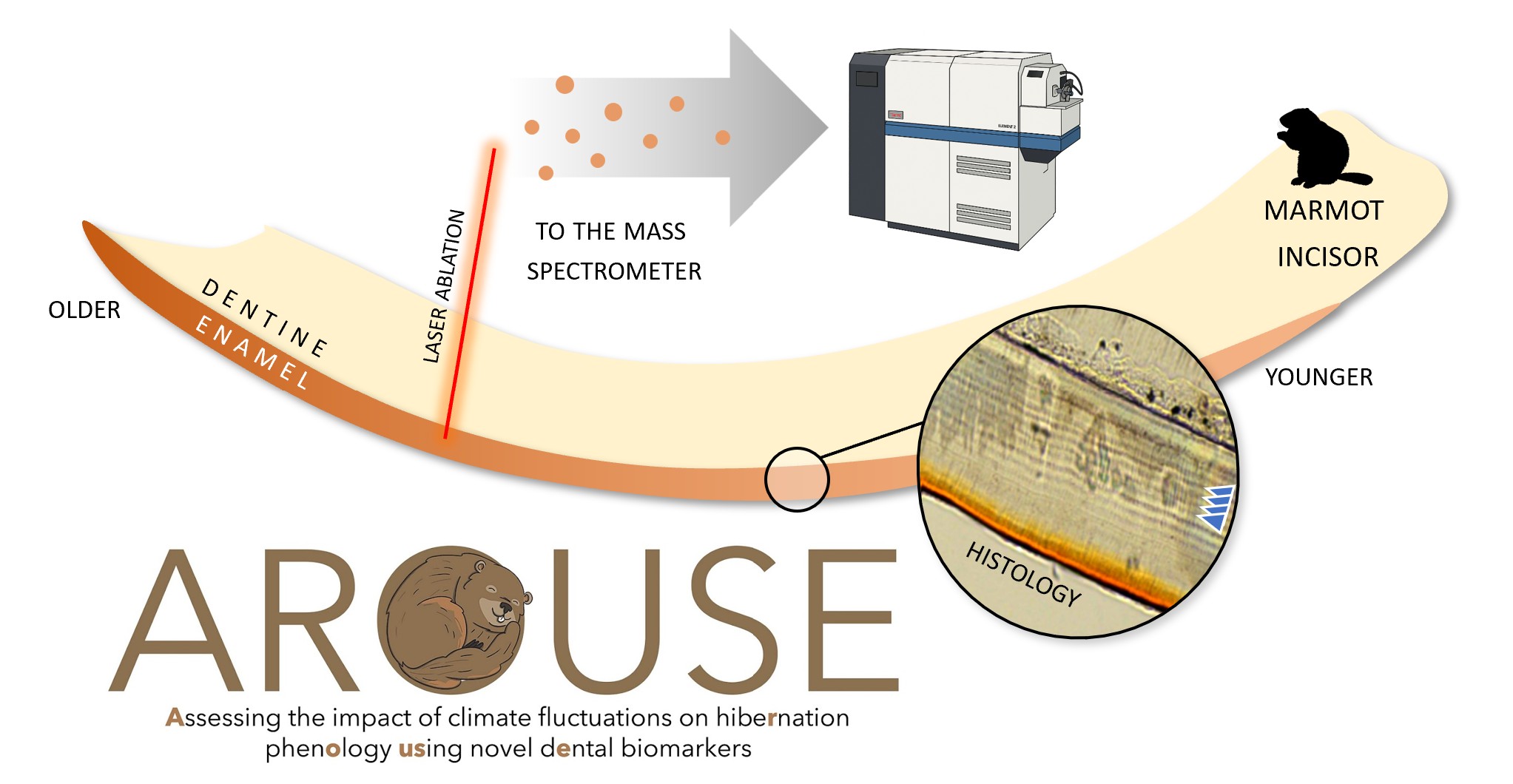 The AROUSE project addresses this gap by examining the hibernation of small mammals from a novel, interdisciplinary perspective. It focuses on the micro-chemistry and histomorphometry of well-dated fossil and modern Alpine marmot (Marmota marmota) incisors, spanning from the Late Pleistocene to the Holocene, thus encompassing the Last Glacial Maximum (LGM). Marmot odontoskeletal remains are abundant in archaeological contexts across this timeframe, providing an exceptional archive for the study of physiological adaptation.