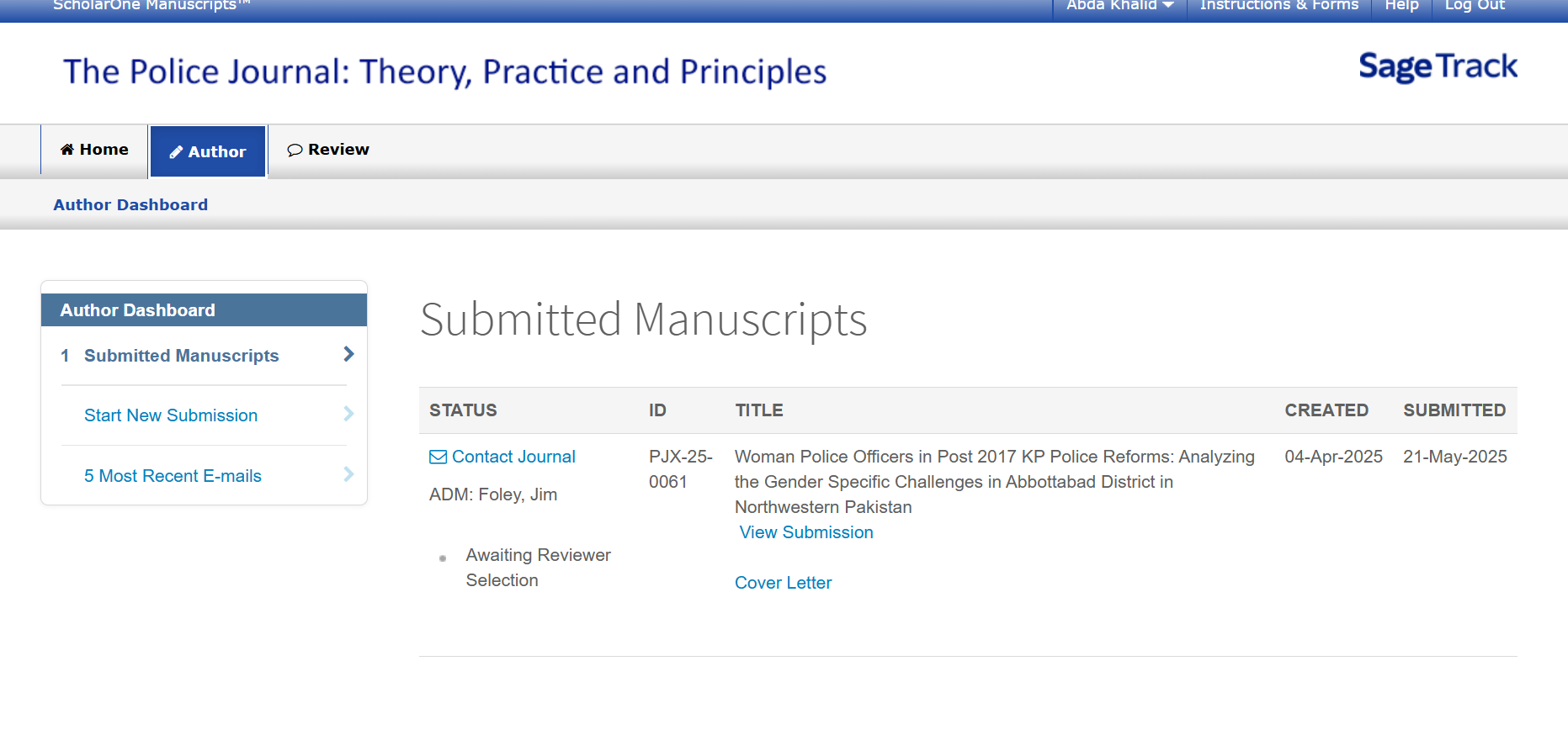 3. PJX-25-0061 Woman Police Officers in Post 2017 KP Police Reforms: Analyzing the Gender Specific Challenges in Abbottabad District in Northwestern Pakistan