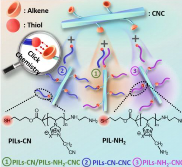 The average concentration of atmospheric CO2 has shown a remarkable increase, ranging from 172 to 300 ppm before the latest industrial age to ~420 ppm at present day. Past decades have witnessed great concerns about the catastrophic consequences resulting from ever-rising CO2 emissions, e.g. global warming, ocean acidification, and many other environmental and climate change issues. Direct air capture (DAC) has established itself as a promising technology to lower the atmospheric CO2 concentration permanently, thus contributing to climate change mitigation. Considering the billions of tons of CO2 that need to be captured, high-performance chemisorbents from the most abundant natural polymer, i.e. cellulose, are of great significance for the practical application of such negative emission technology. The main objective is to construct high-performance cellulosic DAC chemisorbents based on robust bijels, which are an emerging class of soft solid materials with interconnected hierarchical pore networks and semipermeable interfacial layers. Cellulose nanocrystals (CNCs) with surface-immobilized 10-undecenoyl groups will be synthesized and then modified by clickable poly(ionic liquid)s (PILs) via simple thiol-ene click chemistry. The surface chemistry of PILs-modified CNCs will further be tuned by a simple counterion exchange method. Next, the applicant will fabricate bijels of high stability by new methods to crosslink the CNCs with designed surface chemistry at the fluid-fluid interface. The robust bijels stabilized by CNCs will then be processed into aerobijels via simple freeze-drying. The numerous accessible amine groups on CNCs, in combination with the bicontinuous porous structure and semipermeable interfacial layers of the final aerobijels, will allow for high CO2 adsorption capacity and fast CO2 adsorption kinetics.
