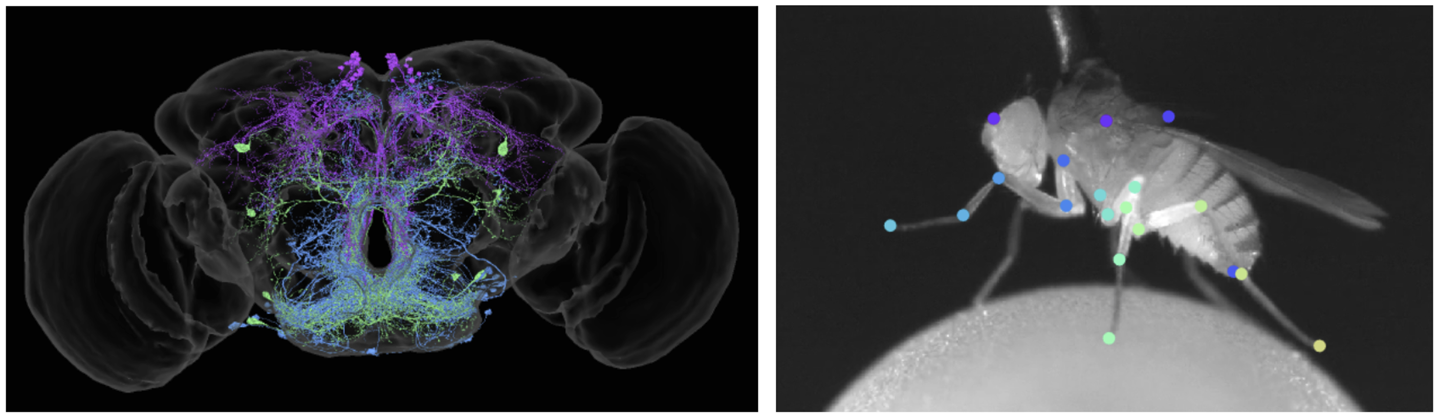 Understanding how neural circuits control arm and leg movements is a major challenge in neuroscience with implications for treating movement disorders, designing neural prostheses, and robotics. Even seemingly simple, everyday movements such as walking rely on the integrated activity of complex circuits that span multiple levels of the nervous system. High-level circuits in the brain generate movement instructions, such as when to start moving and how fast to move. Low-level circuits in the spinal cord (in vertebrates) or ventral nerve cord (in invertebrates) integrate these instructions to generate appropriate activation patterns for muscles. The instructions are encoded by a small number of descending neurons, which form a critical link between the brain and the body. In this project, we addressed two major open questions related to descending neurons: how brain circuits are organized to recruit descending neurons for a specific motor task in a context-appropriate manner, and how low-level circuits translate descending neuron instructions into coordinated limb movement. To tackle these questions, we took advantage of the powerful experimental tools available for the compact nervous system of the fruit fly, Drosophila melanogaster, including connectomics, optogenetics, and neural recordings in behaving animals. The fly’s neural circuits controlling the limbs are more tractable and experimentally accessible than those of vertebrates, but still similar in their basic organization and function. This suggests that the motor control principles discovered in the fly will be highly relevant to motor control in other animals, including mammals.