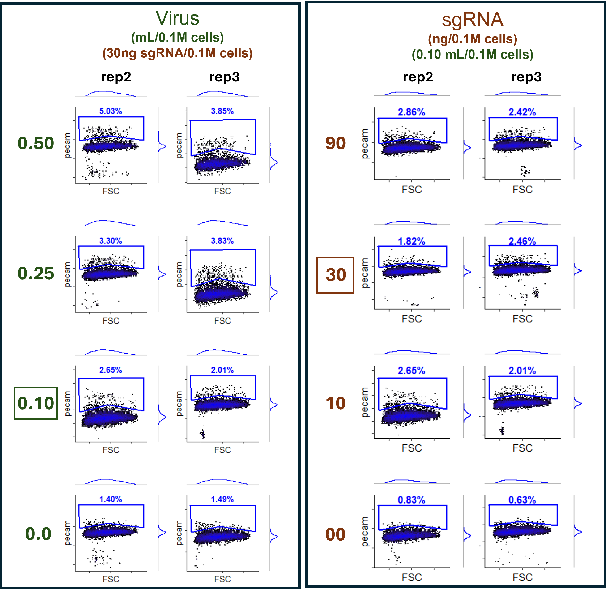 We next set out to exploit the Cas9-VPR system to activate the expression of transgenes in iPSC-derived FUCCI cardiomyocytes. Howevere, activation of the expression of endogenous genes mediated by the Cas9-VPR transgene expressed from the AAVS1 locus remained very inefficient, likely due to silencing of the Cas9-VPR transgene in a large fraction of the cells. Therefore, we decided to make use of lentivirus-mediated expression of Cas9-VPR. Flow cytometry confirmed in 3 independent experiments the overexpression of these endogenous genes. These results indicated that we had generated an iPSC-line that, upon cardiac differentiation, expresses both the FUCCI reporters as well as a functional Cas9-VPR system.