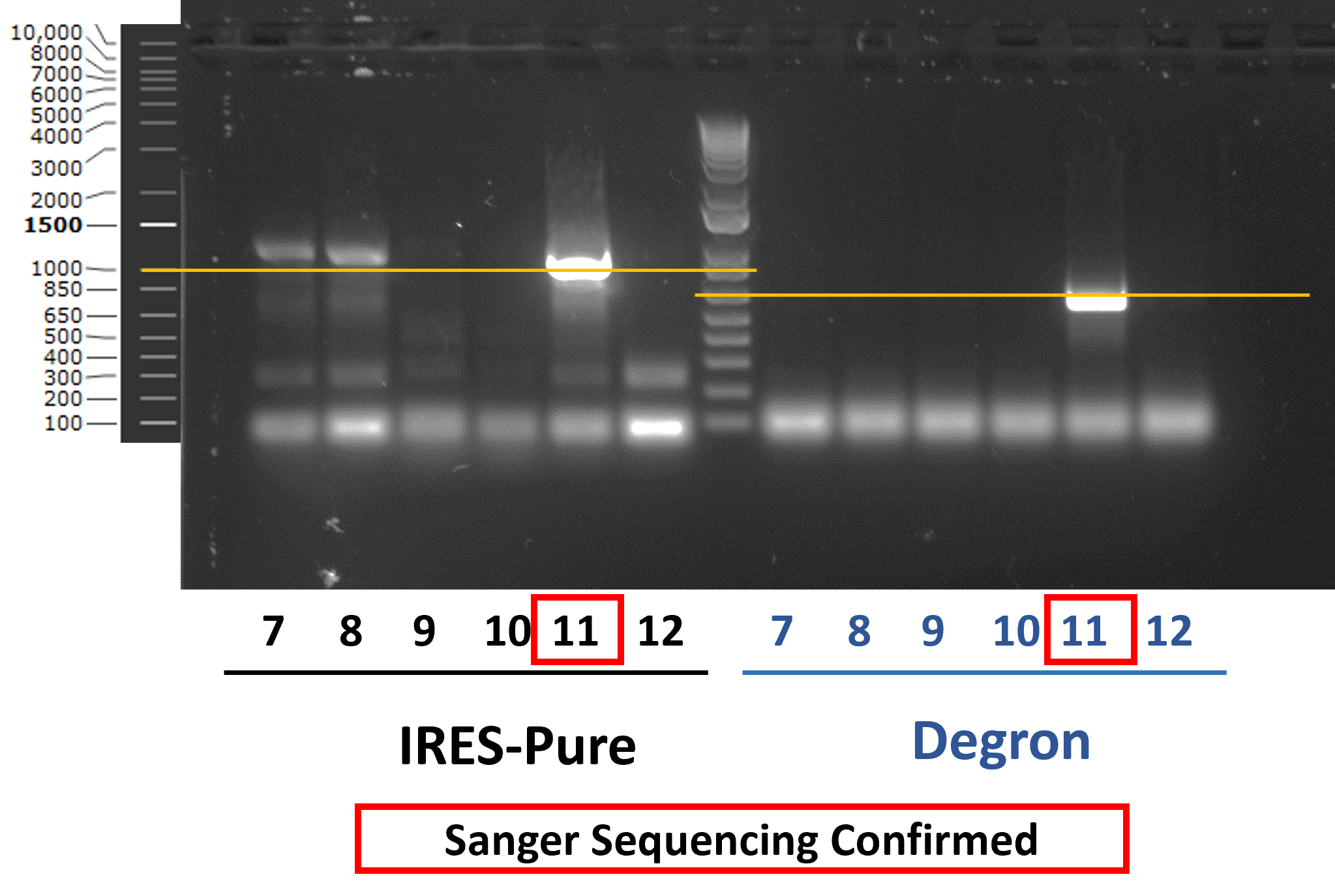 To further improve the system, we developed new targeting plasmidz that include a puromycyin selectable cassette and Degron-subunit, which can be used to select cells that express the Cas9-VPR protein and for the targeted degradation of the Cas9-VPR protein, respectively.