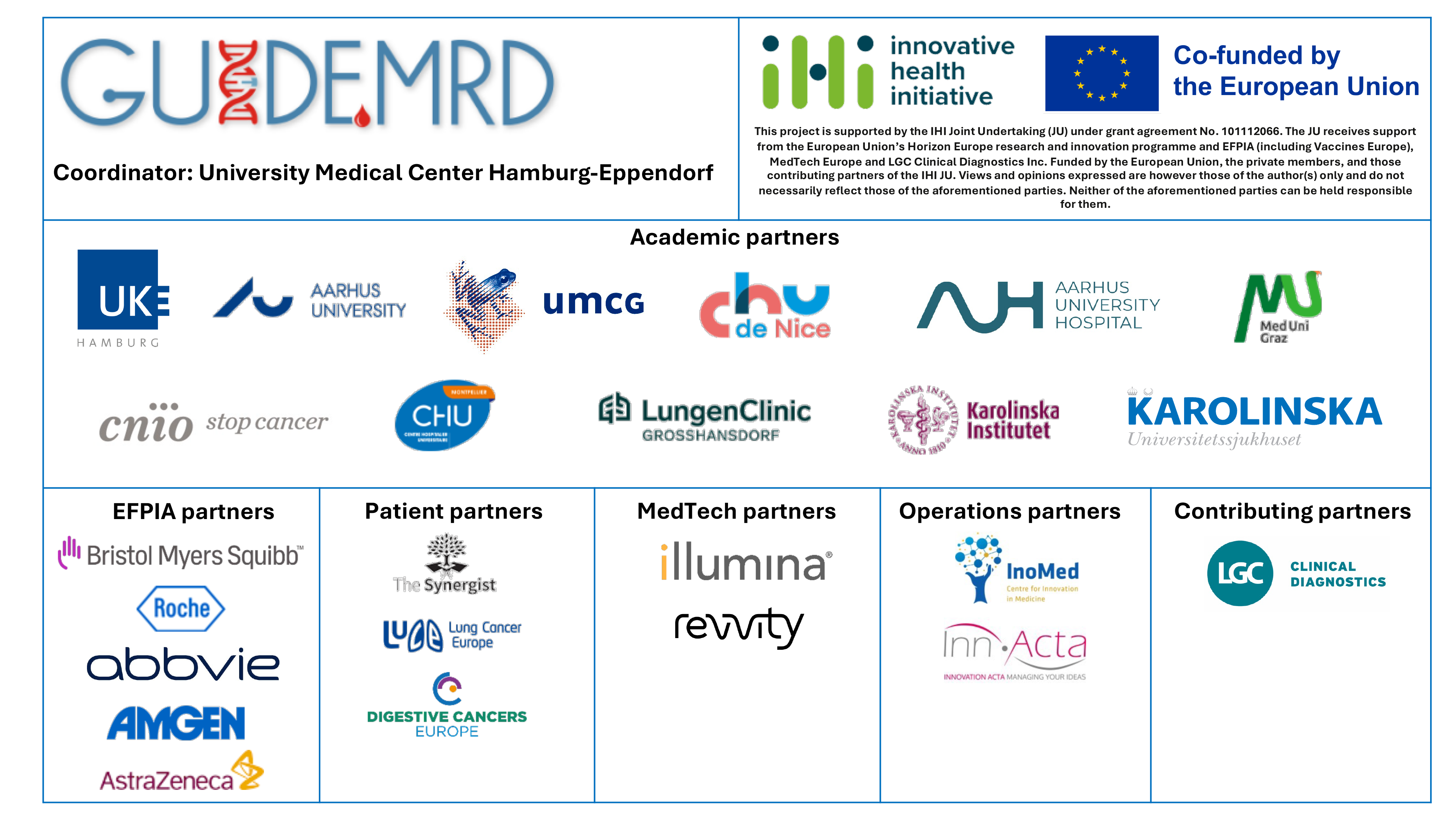A patient advisory board has been established covering all cancers and recruting countries in GUIDE.MRD to understand the needs of the patients living with or having lived through a cancer diagnosis and therapy. Key stakeholders have been identified and contact will be initiated to establish dialogue between relevant parties.