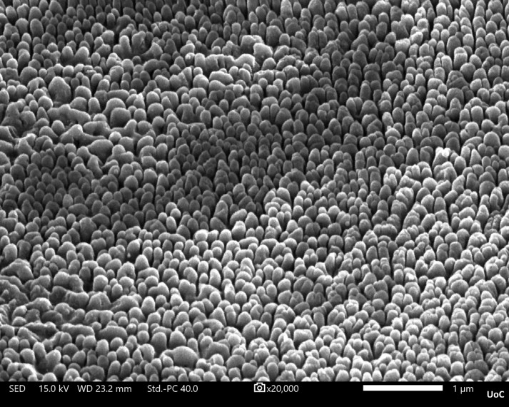 SEM image of a nanotextured anti-reflective glass surface