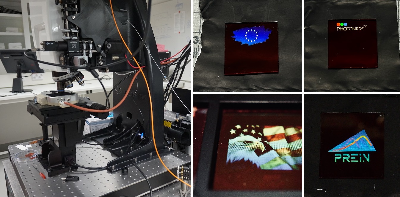 The HOLOSHAPE project addressed this problem by introducing an approach to fabricating diffractive optical elements using azobenzene materials. The method relies on light-driven surface structuring of azobenzene-containing thin films, where the material reshapes itself at the nanoscale in response to light patterns. A digital holographic microscopy tool developed by the team enables real-time monitoring and feedback control of the structuring process with nanometer precision. This combination makes it possible to write complex patterns directly onto the surface in a single step, as well as to erase and rewrite structures when a design needed to be modified. In this way, prototyping cycles that previously took months could be reduced to days.