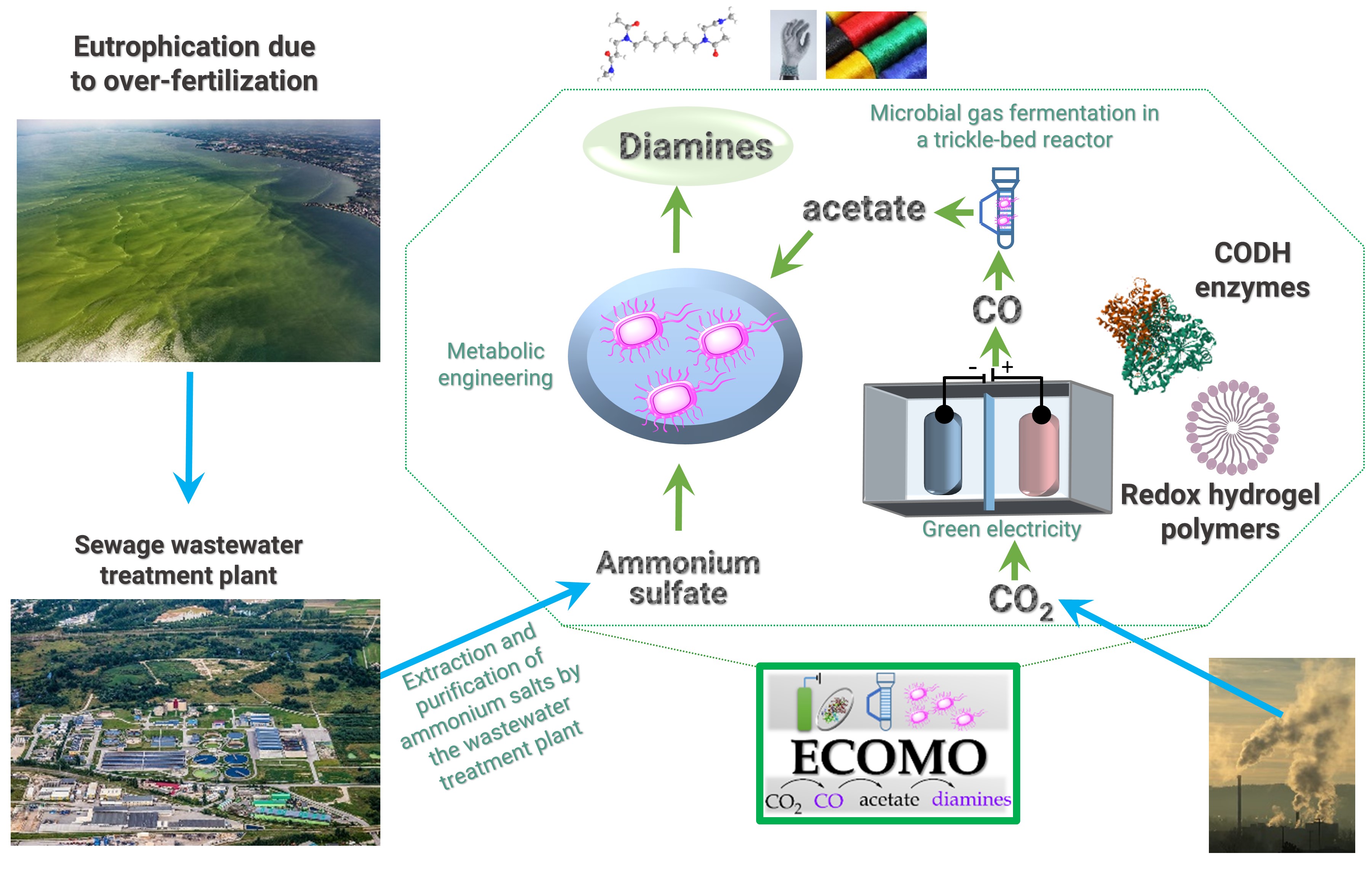 Periodic Reporting for period 1 - ECOMO (Electrobiocatalytic cascade for bulk reduction of CO2 to CO coupled to fermentative production of high value diamine monomers)