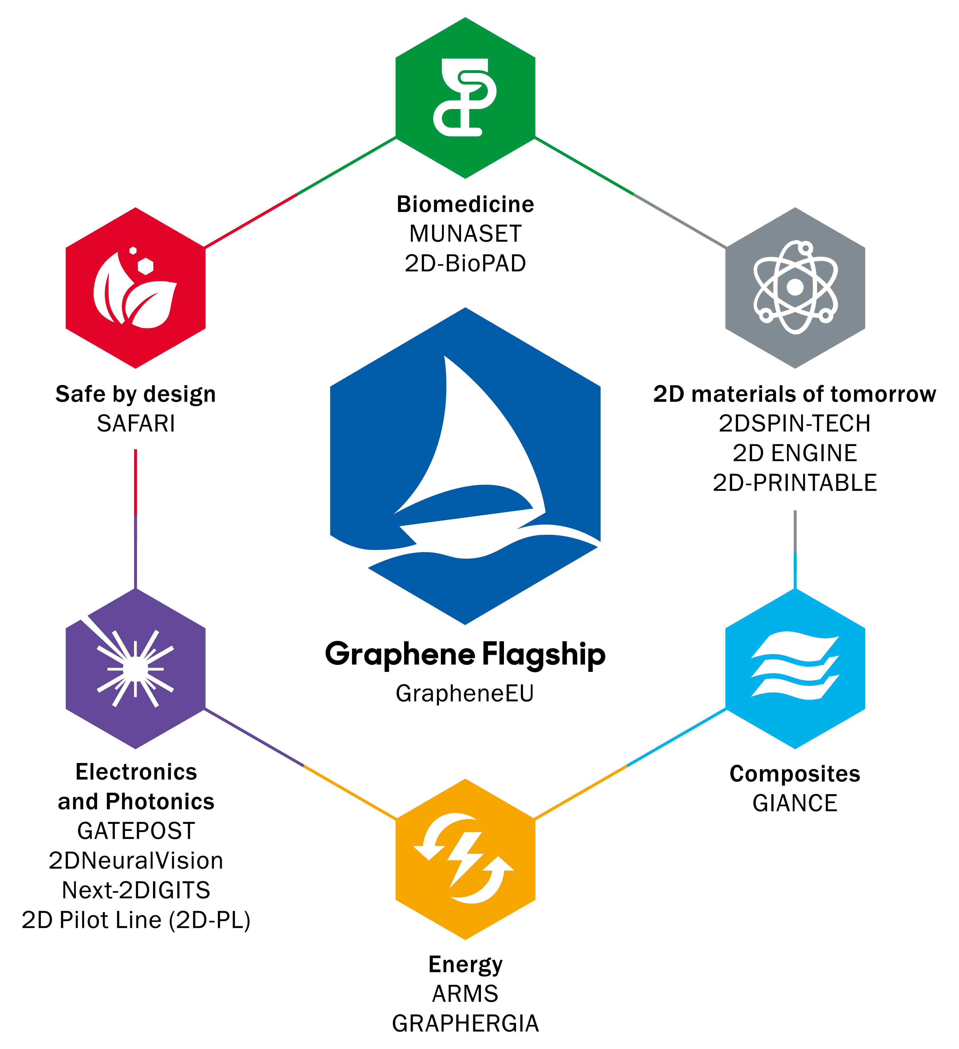 GrapheneEU builds upon the experience and expertise of a consortium in charge of the central support and coordination functions of the GF in the past ten years, with access to a broad network of researchers and organisations. This CSA will ensure a strong and coherent initiative by providing key support functions in coordination and governance, industrialisation, dissemination, and alignment, enabling the projects to identify and utilise synergies in their work, share best practices, and promote interactions with relevant initiatives.