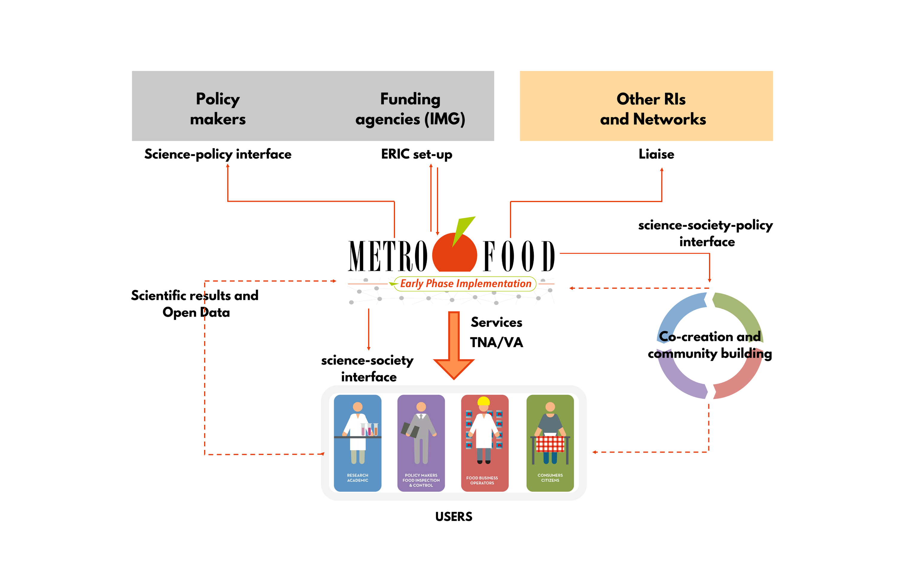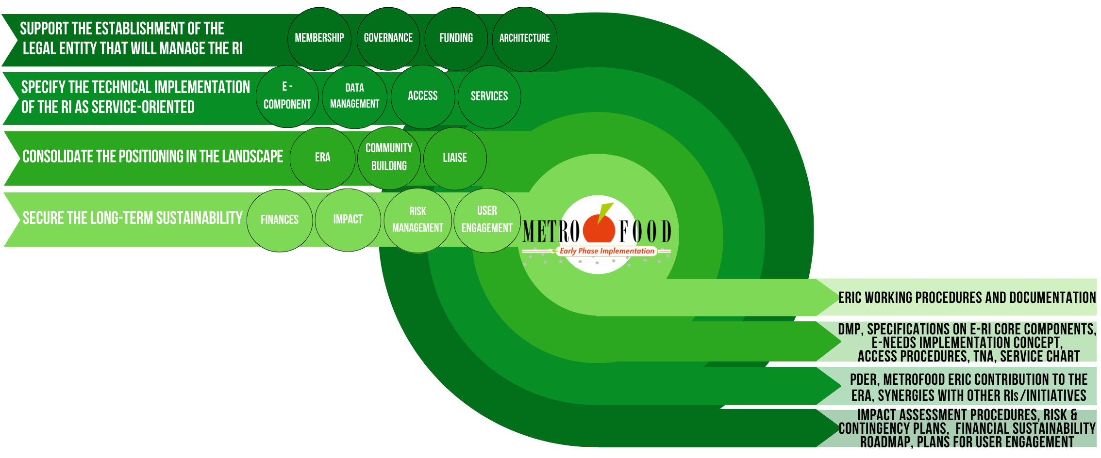 METROFOOD-EPI is the HEu funded project supporting the Early Phase Implementation of METROFOOD-RI; its overarching mission is to advance the building process of METROFOOD-RI as infrastructure consolidated for its full implementation and ensure an effective start of the operational phase. To this end, the following specific objectives were identified: support the establishment of the legal entity that will manage the RI; specify the technical implementation of the RI as service-oriented; consolidate the positioning in the landscape, as a research facility oriented towards end-users in the agrifood sector; secure the long-term sustainability of the RI.