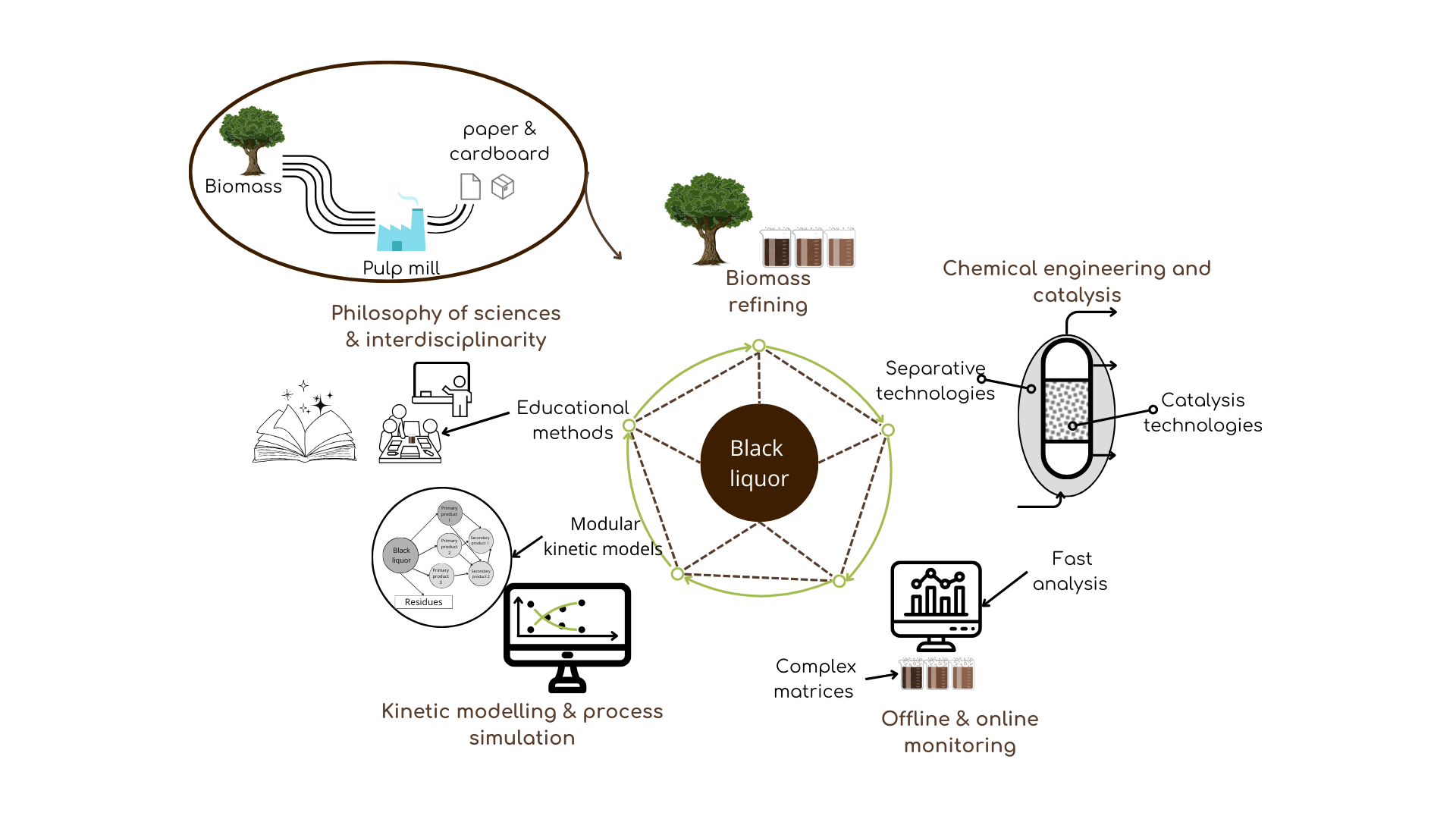 The use of new feedstocks derived from renewable or waste resources is essential for the future of the chemical industry. There is a need for a better understanding of these materials and their transformation from a chemical and engineering point of view. Funded by the European Innovation Council, the DREAM project aims to address the transformation of complex matrices in the chemical industry. It will use Kraft black liquor as a case study to develop new processes that combine reaction and separation in parallel and sequential mode to produce valuable products. Online monitoring coupled with the design of original modelling and simulations will be elaborated. Interdisciplinarity, as the core of the project, will be explored with approaches borrowed from philosophy and social science.