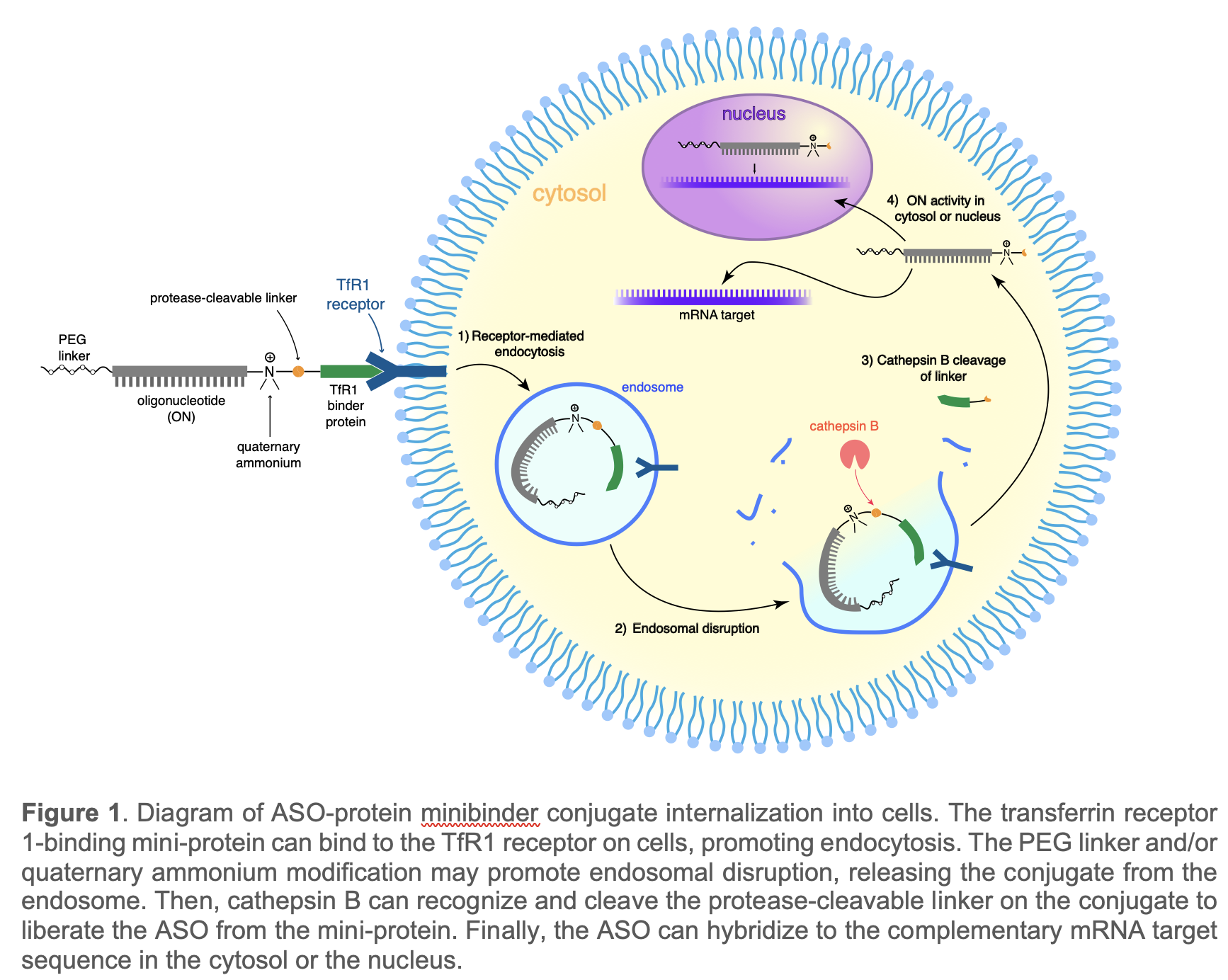 Outcome: This stage of the project was not achieved, but we anticipate that conjugation of the protein-linker to ASO would be simple and could therefore be easily tested for endosomal escape.