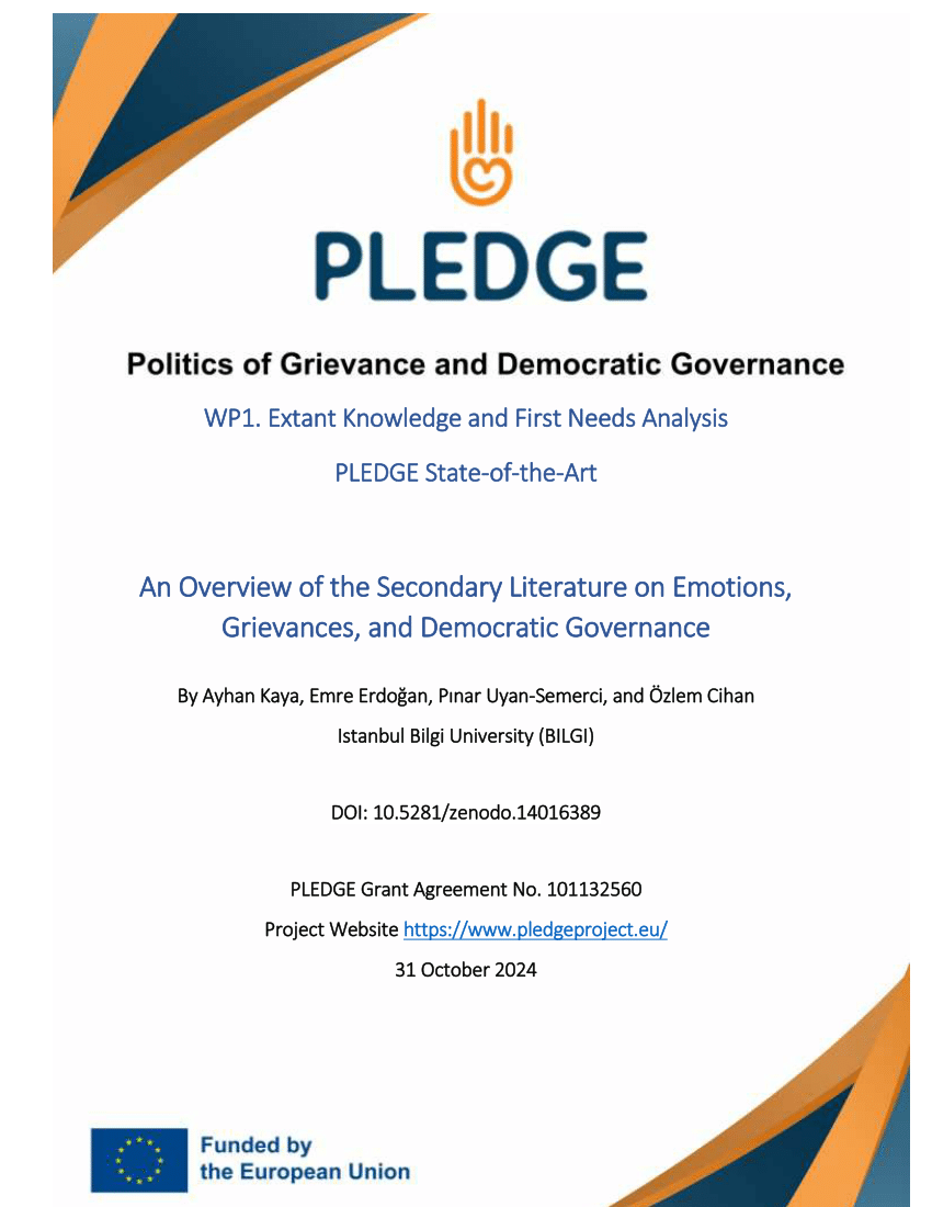 PLEDGE investigates: (1) when grievances lead to anti-democratic versus pro-democratic expressions; (2) how grievances shift between these expressions, identifying the factors that drive transitions; (3) how policymakers can promote constructive engagement through emotionally sensitive governance. The project’s objectives are to: 1. Understand emotional drivers and consequences of grievance politics; 2. Assess their impact of the emotional economy of grievances on policymaking; 3. Develop tools for emotionally intelligent policymaking and governance.