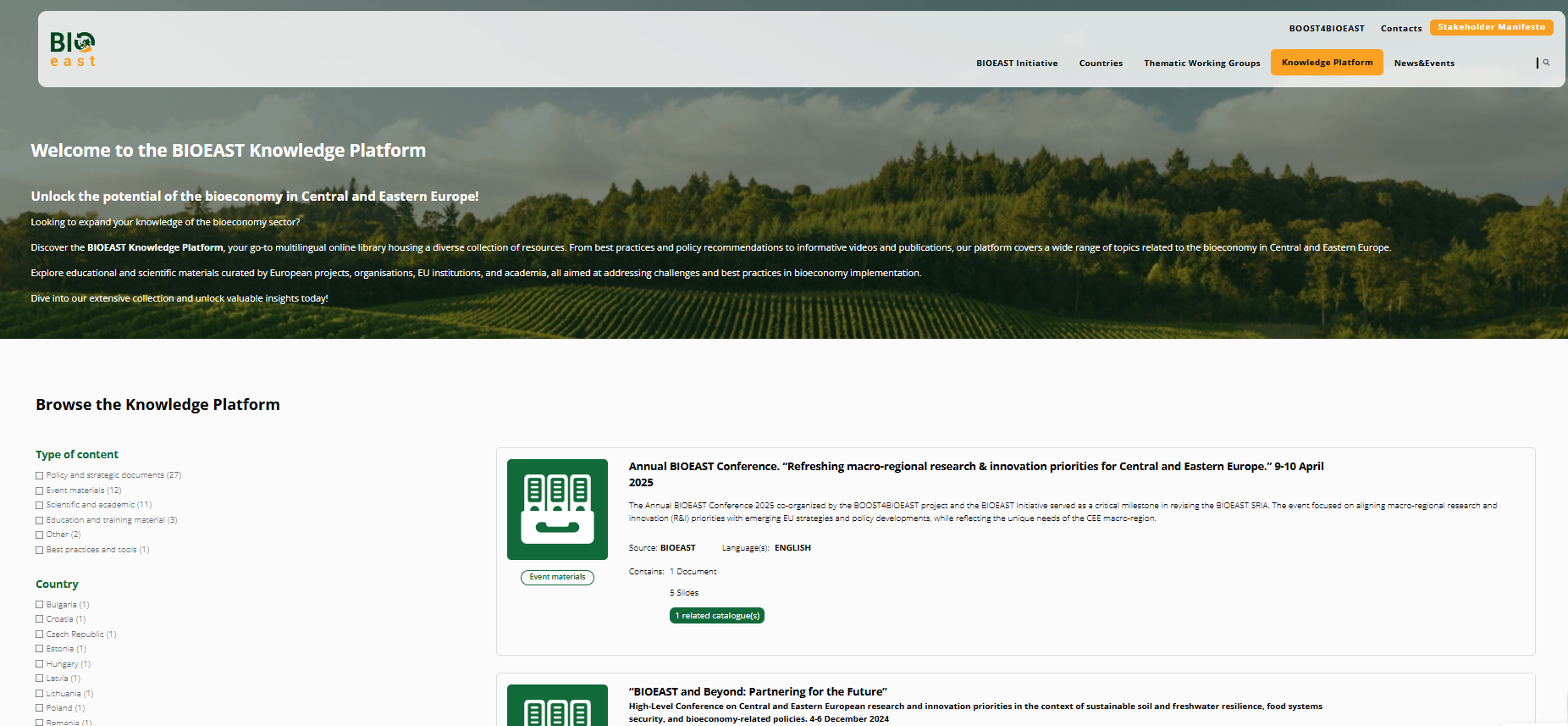 Nine new national BIOEAST HUBs were launched, building on the BIOEAST HUB Handbook (D2.1) which provided shared operational procedures, stakeholder engagement techniques, and best practices. Two pre-existing HUBs expanded their networks accordingly. Using the LogFrame methodology, all eleven HUBs and seven TWGs had prepared their roadmaps for the first two years. The project’s new website was launched, serving as a central communication platform that regularly shares updates on HUB kick-offs and national events, while also providing dedicated HUB mini-sites, accessible in both English and national languages. In addition to the 11 HUB mini-sites, the Knowledge Platform was launched, featuring over 170 materials in national languages, supporting both knowledge sharing and HUB-level outreach. Complementing this, WP7 led the co-design of the AP methodology which was tested and finalized in D7.1. This methodology guides the HUBs in structuring national AP workshops. So far, three HUBs (SI, HR, LT) have organised their first AP workshops. The TWGs organised seven science-policy webinars aligned with their thematic priorities. Preparations for the OIC began with co-design workshops, and finalization of eight thematic challenges and a promotional plan. The OIC received 43 proposals aiming to identify key bioeconomy challenges across the macro-region. In parallel, the multidimensional assessment of bioeconomy competences, innovation systems, biomass availability, and educational needs was initiated. The methodology for mapping competences and biomass (D3.1) was tested and applied in 10 HUB countries. WP4 completed the mapping of national and EU bioeconomy strategies, innovation indicators, and funding instruments, consolidated in D4.1 which also supports the development of APs. WP5 completed the education needs assessment (D5.1) informing recommendations for the UniNet. Two major Bioeconomy Conferences were organised fostering stakeholder exchange and partnerships with 20+ EU bioeconomy projects also hosting one international policy dialogue focusing on the policy implications of the multidimensional assessment results.