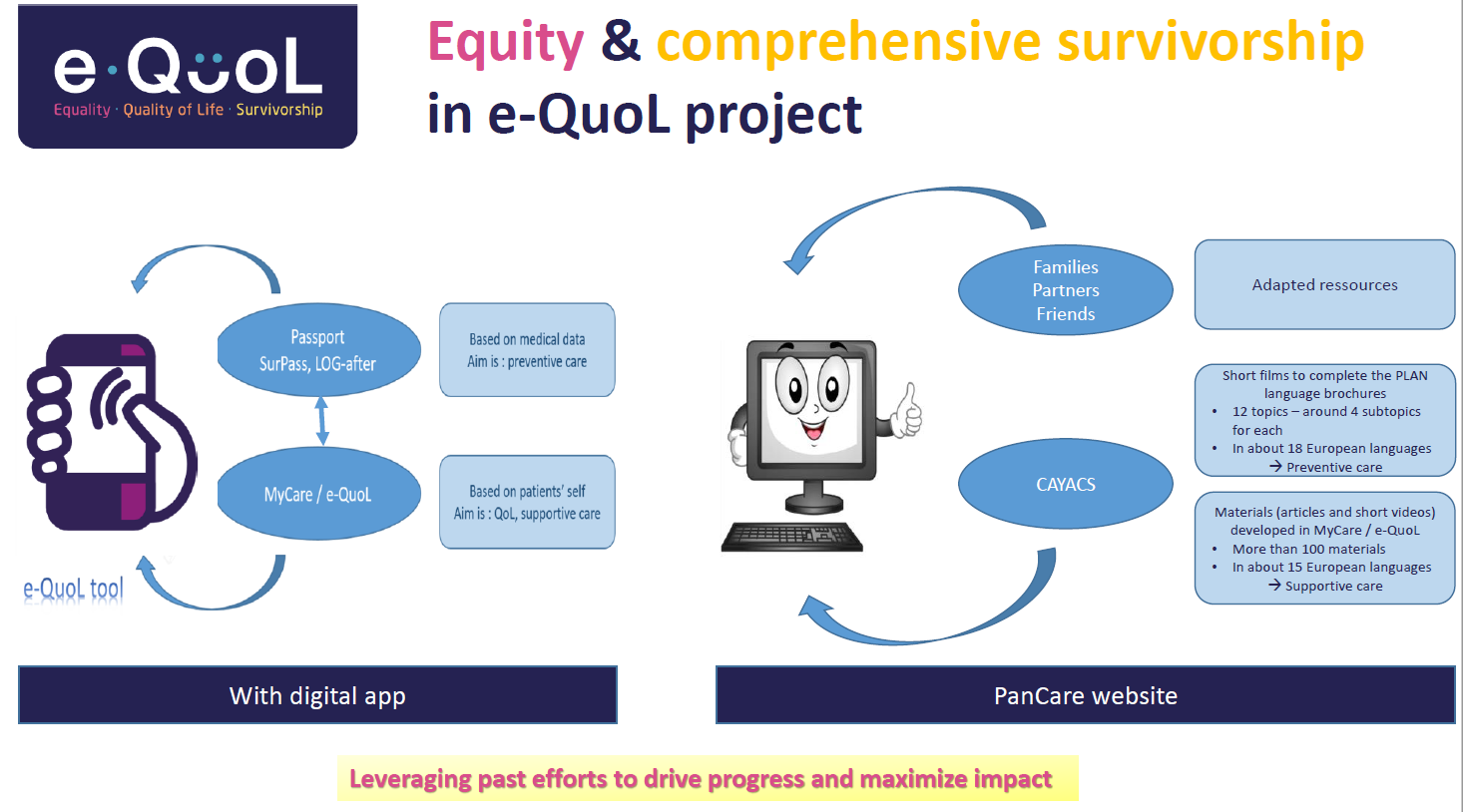 Yet, survivorship care quality and availability vary widely across Europe. Some systems offer tailored support; others provide limited services. e-QuoL aims to address these disparities by using e-health tools to improve Equity in Quality of Life for CAYACSs and their families. The project adapts digital solutions enabling survivors to access personalised information on long-term follow-up (LTFU), recommended screenings, and supportive resources in their local language.