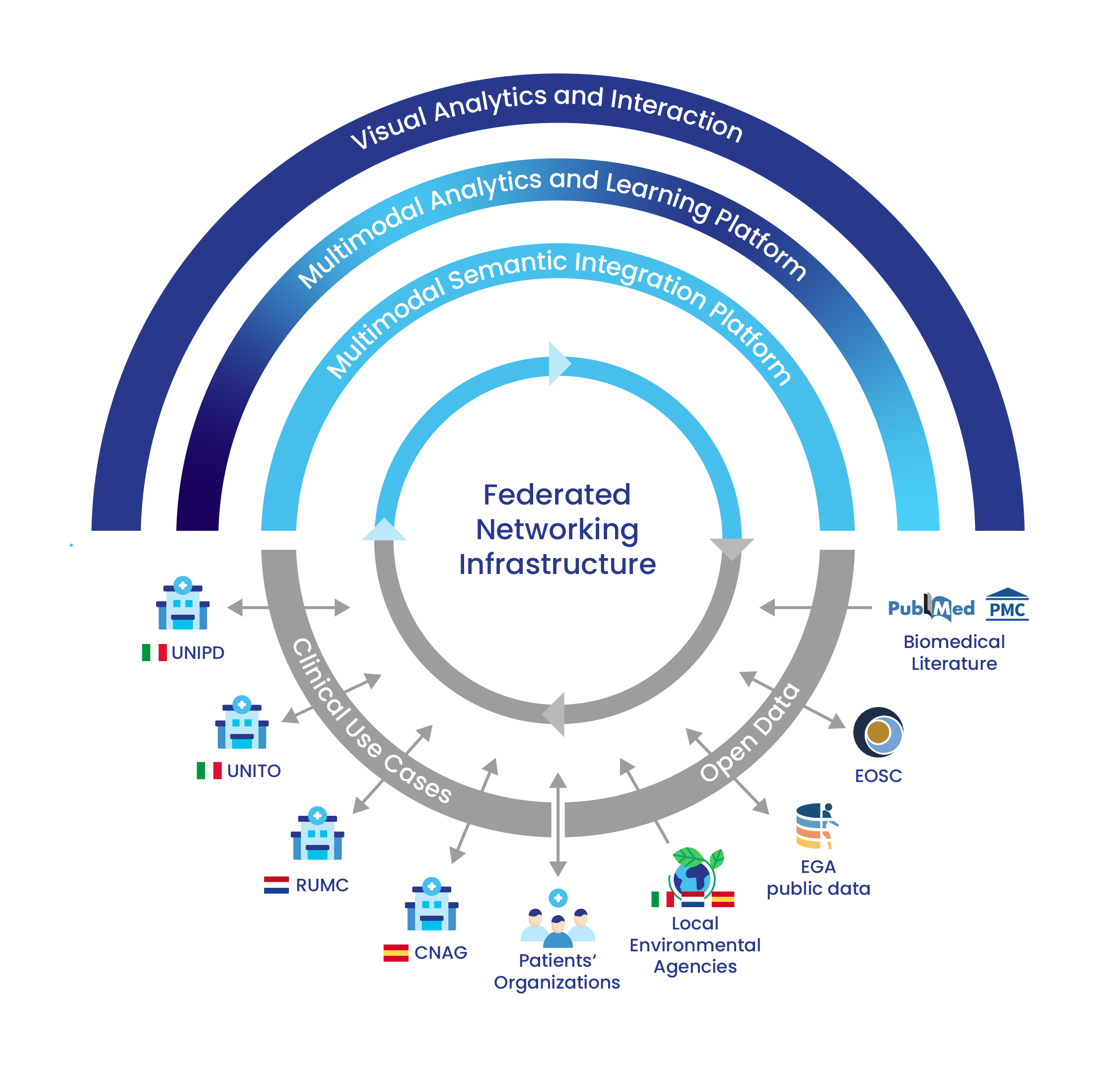 - User-centred decision tools: Provide visual analytics, open knowledge graphs, and multilingual terminology so clinicians, researchers, policymakers, and citizens can act on the insights with confidence.