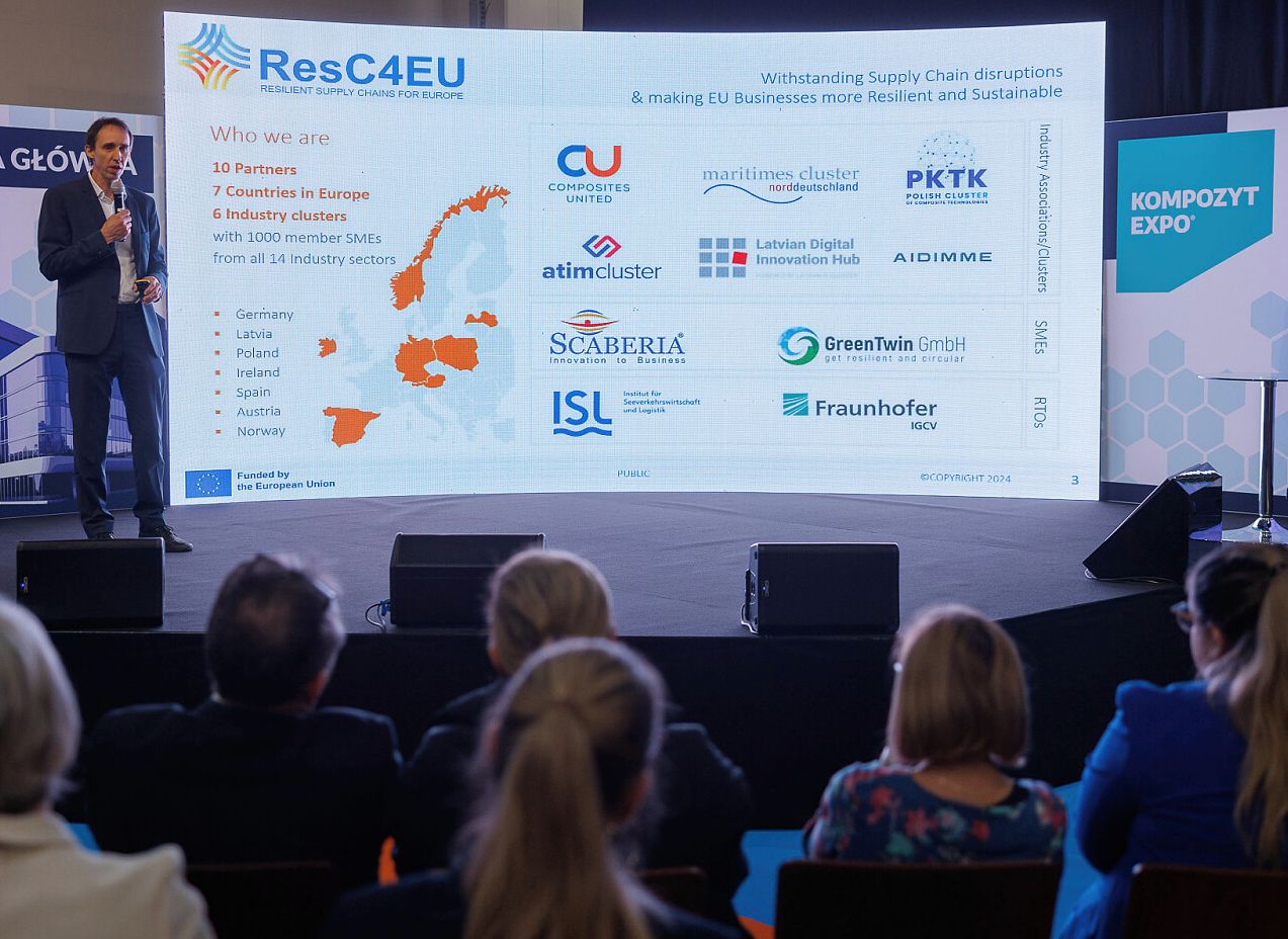 ResC4EU is a Collaboration and Support Action (CSA) project and initiative funded by the European Union with 3 million Euros. It aims to support EU businesses, particularly Small and Medium sized enterprises (SMEs), in becoming more resilient and sustainable and be able to quickly adapt to supply chain disruptions such as experienced during COVID-19 crisis, geopolitical tensions or disasters (e.g. Suez Channel closure, floodings, strikes) by implementing advanced technologies.