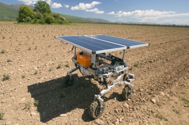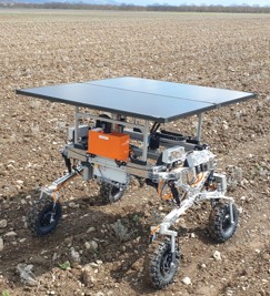 Our solution to this problem is a fully autonomous weeding robot in the form of a light-weighted 4-wheeled electric engines rover, using 100% solar energy to power all onboard systems. A down-facing camera captures images of plants, which are then analysed by Artificial Intelligence based on deep neural networks to distinguish weeds from cultivated plants and guide the weeding modules. The weeds are removed via contact (mechanical) or contactless (energy beam) weeding modules, depending on weed size, type and soil conditions. Off-the-shelf multi-GNSS (including Galileo) navigation system, combined with both cameras inputs and support software, provides end-of-row turning capability and robust special orientation around the field. Several integrated devices ensure constant 2-way communication with a central company data and monitoring hub.