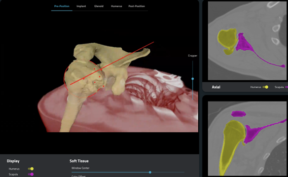 The product brAIn Shoulder Positioning (the Clinical App Shoulder) is the first web-based surgery planning software capable of displaying volume renderings of soft tissues and of the inside of bones.