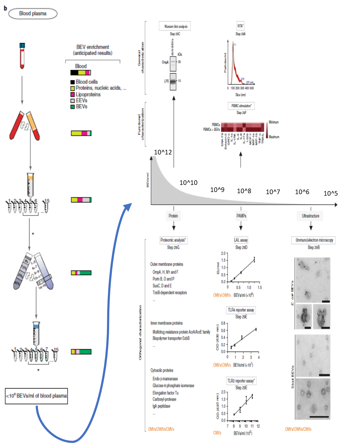 concentration) and electron microscopy (low EV concentration) characterisations.