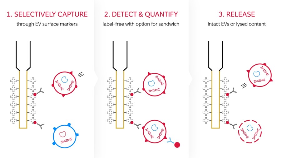 The main achievements are capture antibody coated probes, an efficient EV isolation and release method