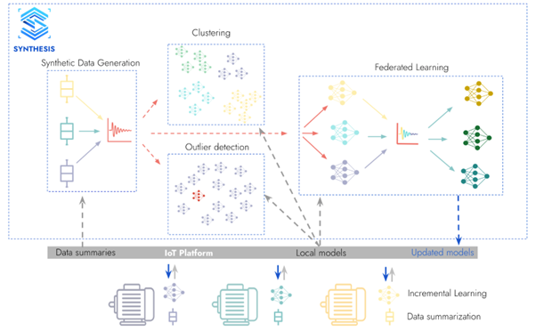 Synthesis aims to significantly impact the industrial sector by providing a scalable and efficient centralised machine learning framework addressing key challenges like data privacy, latency, and bandwidth usage. Integrating FL, outlier / anomaly detection, clustering, and model orchestration techniques will enhance operational efficiency, reduce maintenance costs, and improve predictive capabilities. Collaborations with industrial partners in sectors like manufacturing, energy, and environmental management ensure real-world applicability and continuous refinement.