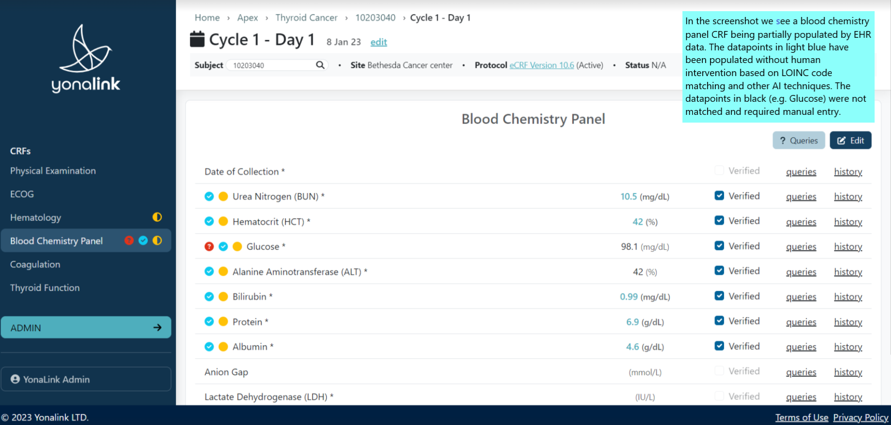Yonalink offers a breakthrough alternative: our system enables direct EHR-to-EDC integration, regardless of the data format. Patient data is transmitted as-is from the EHR, and Yonalink automatically identifies and matches the relevant fields to the EDC using advanced AI matching techniques. This eliminates the need for upfront mapping and reduces both setup time and long-term maintenance. Yonalink has made notable progress beyond the state of the art in advancing the integration process by demonstrating that the traditionally resource-intensive and time-consuming mapping phase, which often required months of manual effort, can be significantly streamlined. Yonalink now enables seamless EHR-to-EDC data transfer, allowing EHR systems to send data in any format while the system automatically processes and aligns it with the corresponding EDC fields. Ultimately, this innovation leads to shorter trial timelines, optimized resource allocation, and more precise data capture.