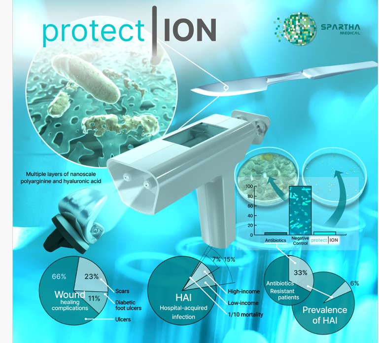 SPARTHACUS project aims to bring a high impact product (protect|ION); a handheld device that can be used to apply thin membranes on open wounds after surgeries and during chronic wound treatment which decreases the possibility of infection and hence increase the healing of such wounds. Such a system can aid millions of patients suffering from chronic wounds and decrease post-surgical infection rates significantly (currently at 10-15%), thus saving hundreds of millions of healthcare costs while having a potential of more than 50 Million euros annual revenues.