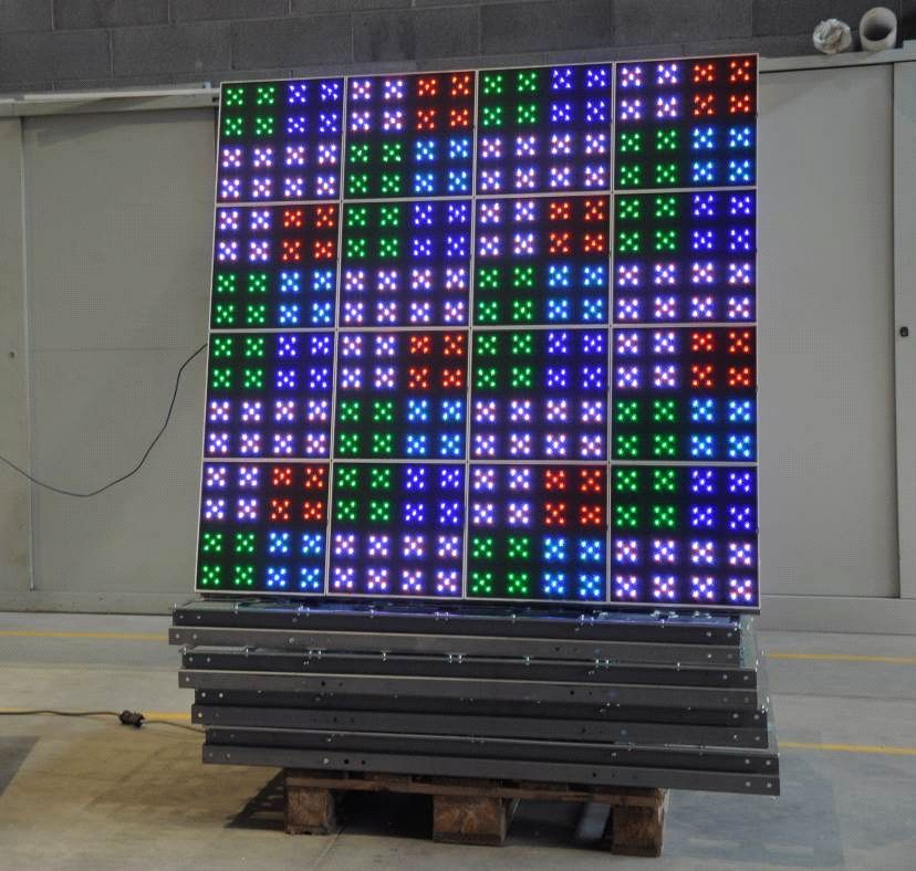 The third product model is a VIDEO tile, intended for the realization of giant video screens to be built in a permanent stand-alone solution. For example, tiles with 30cm x 30cm size, with 16 independent pixels of 7.5cm x 7.5cm size can make a video of 60m x 48m size, with 0.5Mpixel resolution.