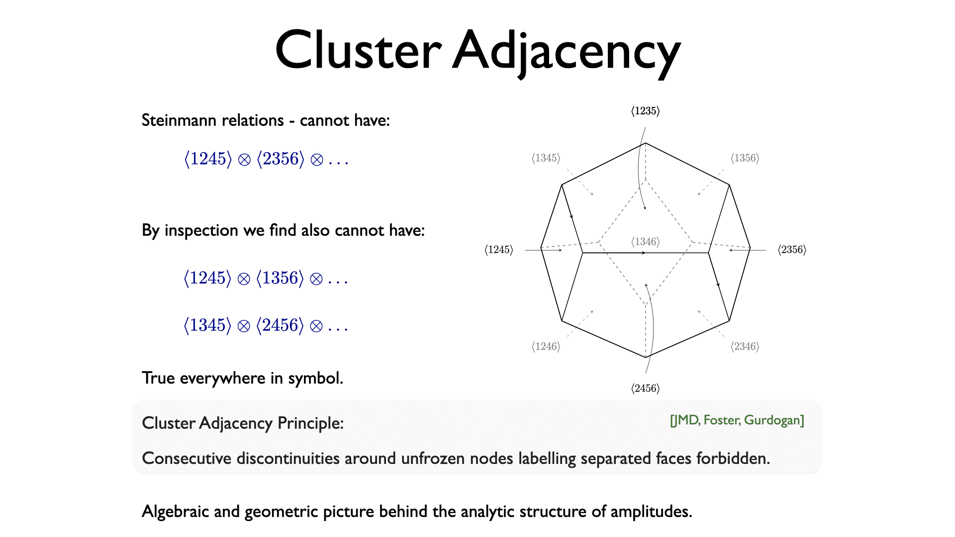 In the area of scattering amplitudes, new results have been obtained by extending and improving the analytic bootstrap programme. This is a framework for calculating scattering amplitudes based on understanding their general analytic structure. At least in the case of the simpler model of N=4 SYM these methods are vastly more powerful than textbook Feynman diagram calculations. Even more importantly they have lead us to discover new mathematical structures which control the analytic behaviour in suprprising ways. For example, the set of possible singularities of the amplitudes seems to be controlled in certain instances by a mathematical structure known as a cluster algebra. My team has explored and greatly extended the relationship between cluster algebras and scattering amplitudes in N=4 SYM, an insight we hope will lead to general lessons for quantum field theory.