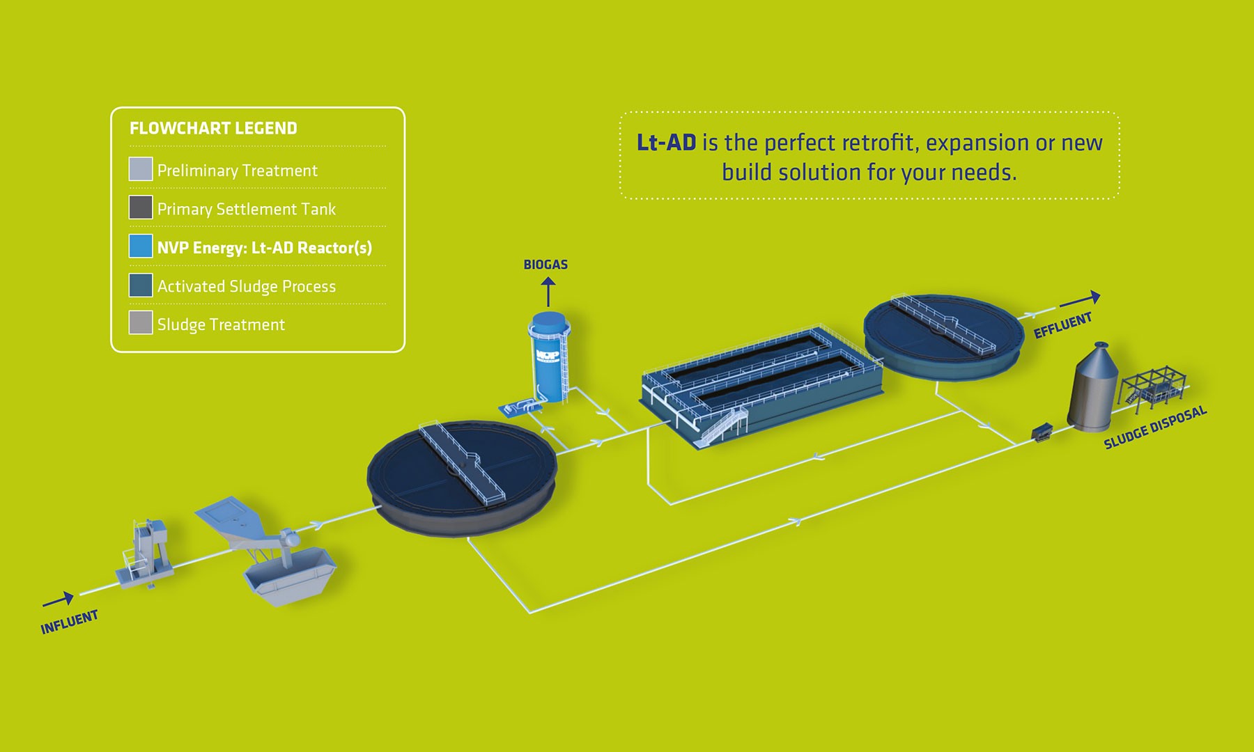 The Phase 1 SME instrument allowed NVP Energy to clearly highlight where the Lt-AD technology would stand in a full-scale plant, and the processes to be incorporated pre- and post- to achieve high standard effluent for release or for recirculation to the remaining site. A flow-chart of WW treatment operation is provided in Figure 3 which clearly highlights the location of the NVP Energy within an on-site treatment system. One of the main benefits of this technology is its modularity and ability to be incorporated as either a retrofit or new-build solution for clients to satisfy an overloaded system, increasing production or to significantly reduce effluent release charges. The benefits of the technology in terms of treatment efficiencies and advantages to the end-user are highlighted in Figure 4 – each of these advantages have wider societal implications, for instance Lt-AD ...: